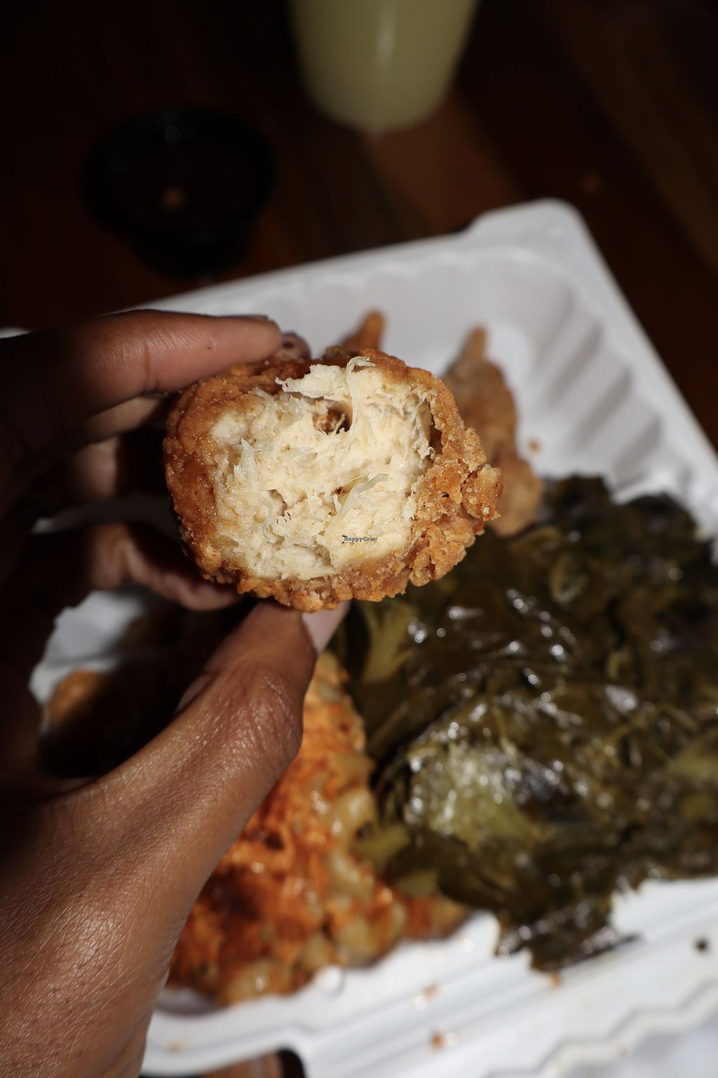 Collard greens, mac n cheese, general tso’s cauliflower, home fries, p…