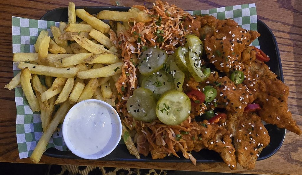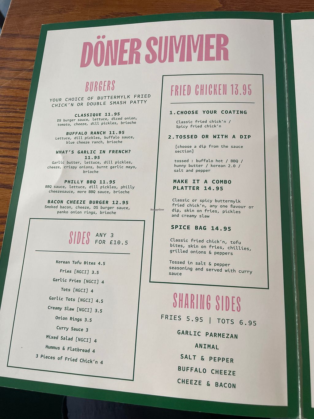 Vegan fast food and drink offering inspired by the street food of Berlin. Expect plant-based kebabs, vegan fried chick'n, and loaded fries. Drinks include sodas, cocktails, beers and ciders. Open Mon-Thu 12:00-21:00, Fri-Sat 12:00-22:00, Sun 12:00-21:00.