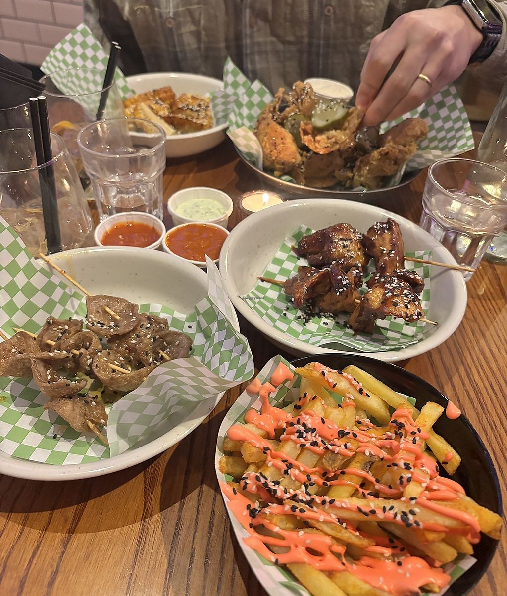 The menu here is so big and is entirely vegan, with the most amazing wings i’ve ever had. I highly recommend going here especially for the korean style wings, garlic potato tots and teller trays!!