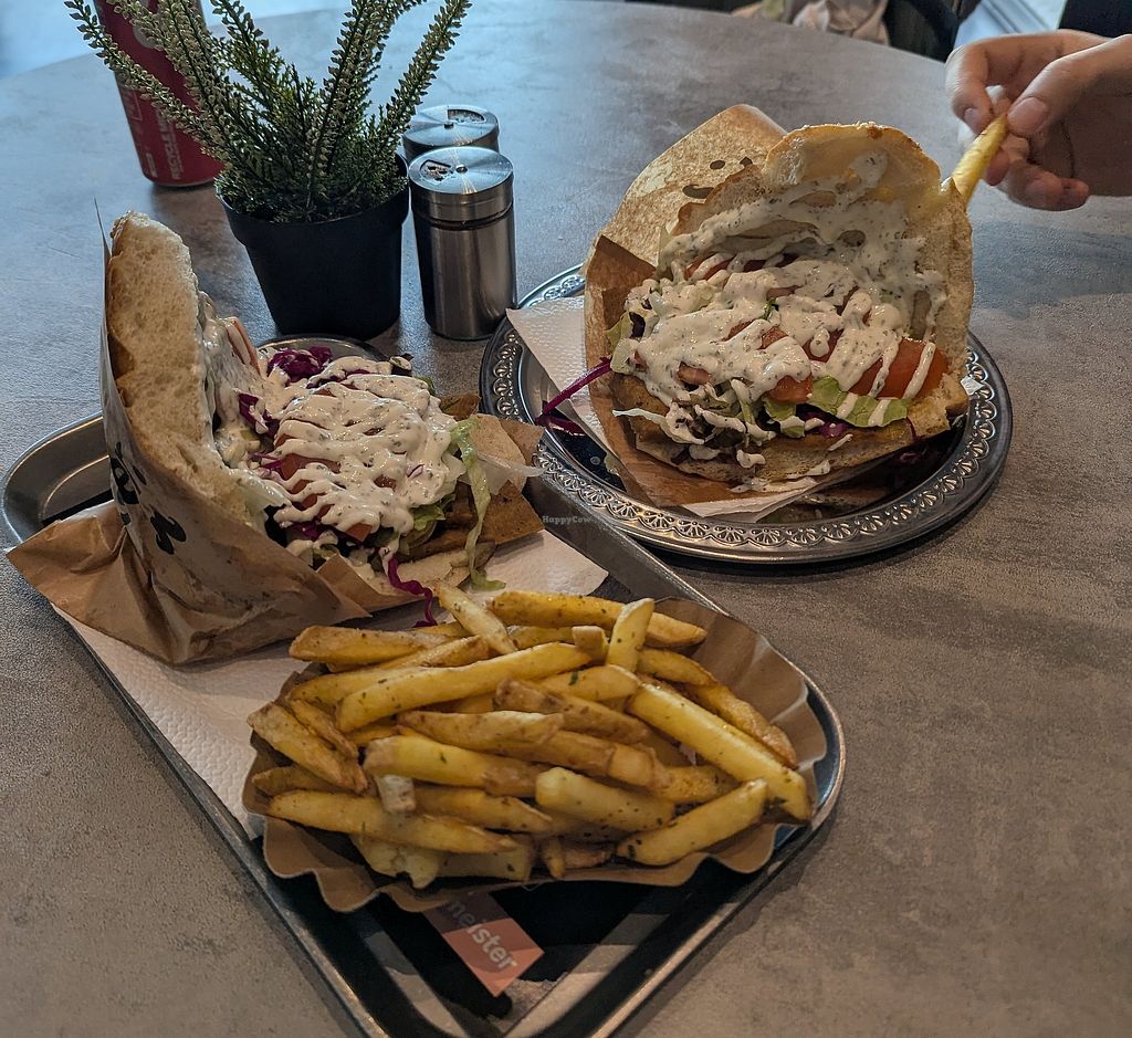 We recently discovered that the newly opened Dönermeister has many vegan / vegetarian options and is a great option when shopping at Auhofcenter, where vegan restaurants are a bit sparse. We have already tried the vegan dürüm and sandwich with vegan sauce (which is on the fruity side, containing mango) as well as the vegan options with vegetarian garlic yogurt sauce. Tastes very good, the sandwich bread is really fluffy and the vegan meat is also great. Would not say that it is "out of this world" good but solid and definitely worth a try if you crave a Kebap. Fries are also very tasty and the staff is super nice.