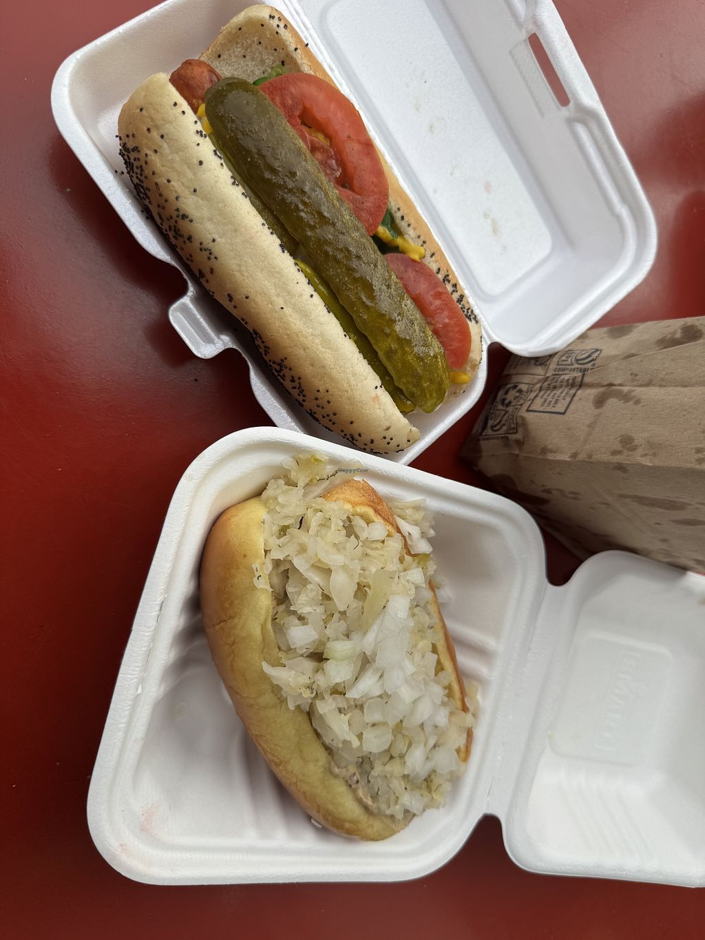 Get the Cali dog vegan or a vegan beer brat, poppy seed buns are vegan as well