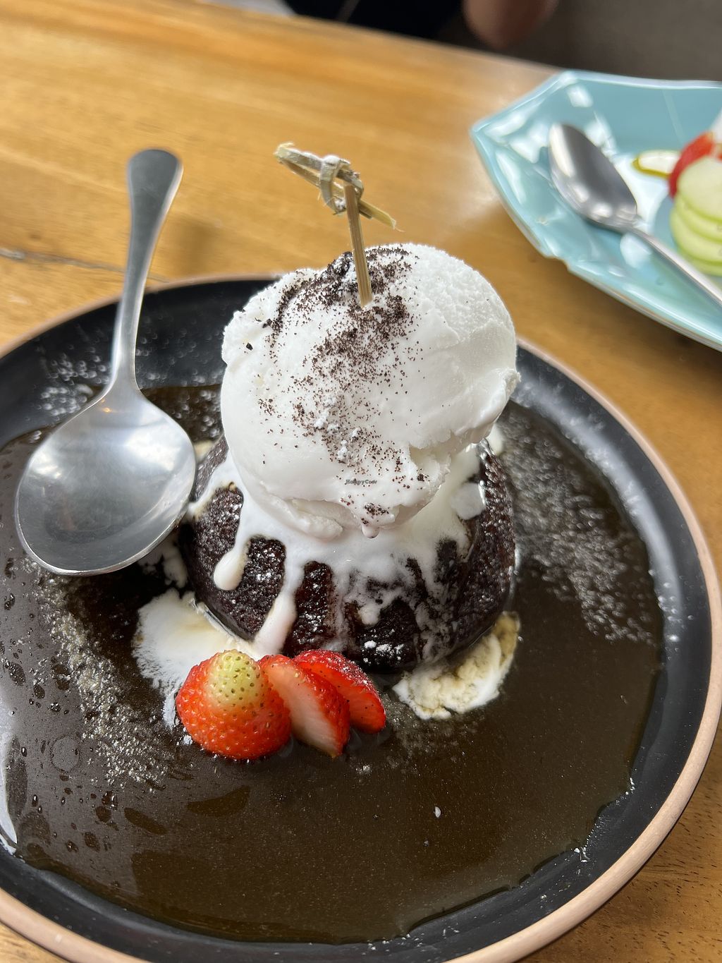 Stopped for coffee & cake, as well as dinner as we were waiting for a friend. The treat cabinet was stocked with goodies and the coffee was great. The Pad Thai sadly and surprisingly didn’t have as much flavour as I’d hoped for but the Teriyaki Ch*cken Poke Bowl had heaps. Big portion sizes too. There were so many options I wanted to try! 💚