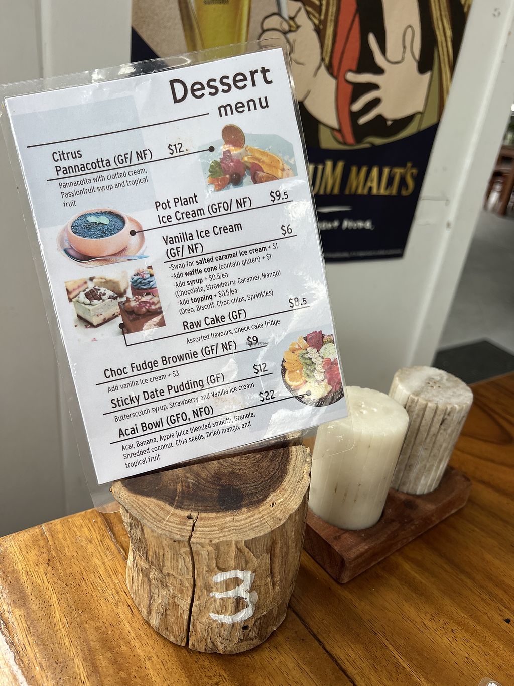 We came here for dinner on our last night in the Gold Coast. There were tables inside and outside. They had wedges and chips and a few other things for entrees. We got the wedges. They were tasty and came with a nice sauce. For our mains I got the laksa and my partner got the foot long hot dog. There were also pizzas and pasta and burgers and other stir frys. My serving of laksa was so big, I couldn’t finish it. There was lots of flavour in it and I liked the fake chicken and prawns.