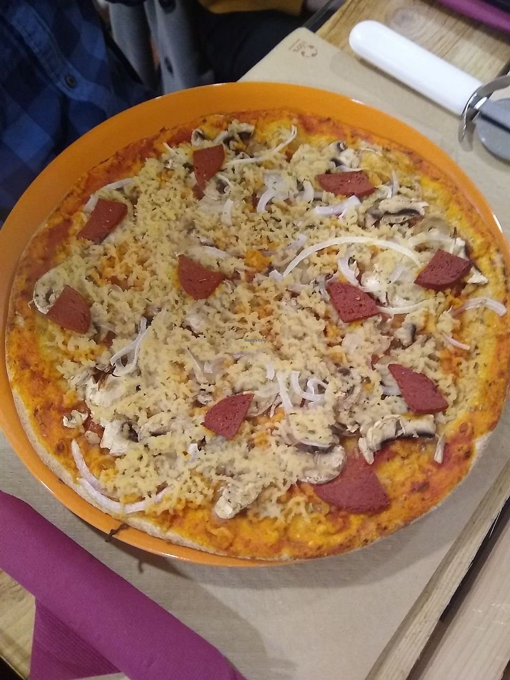 Great selfmade vegan cheese on the pizza. The ambiance and styling of the restaurant could have been better, nevertheless I'd recommend to go here!