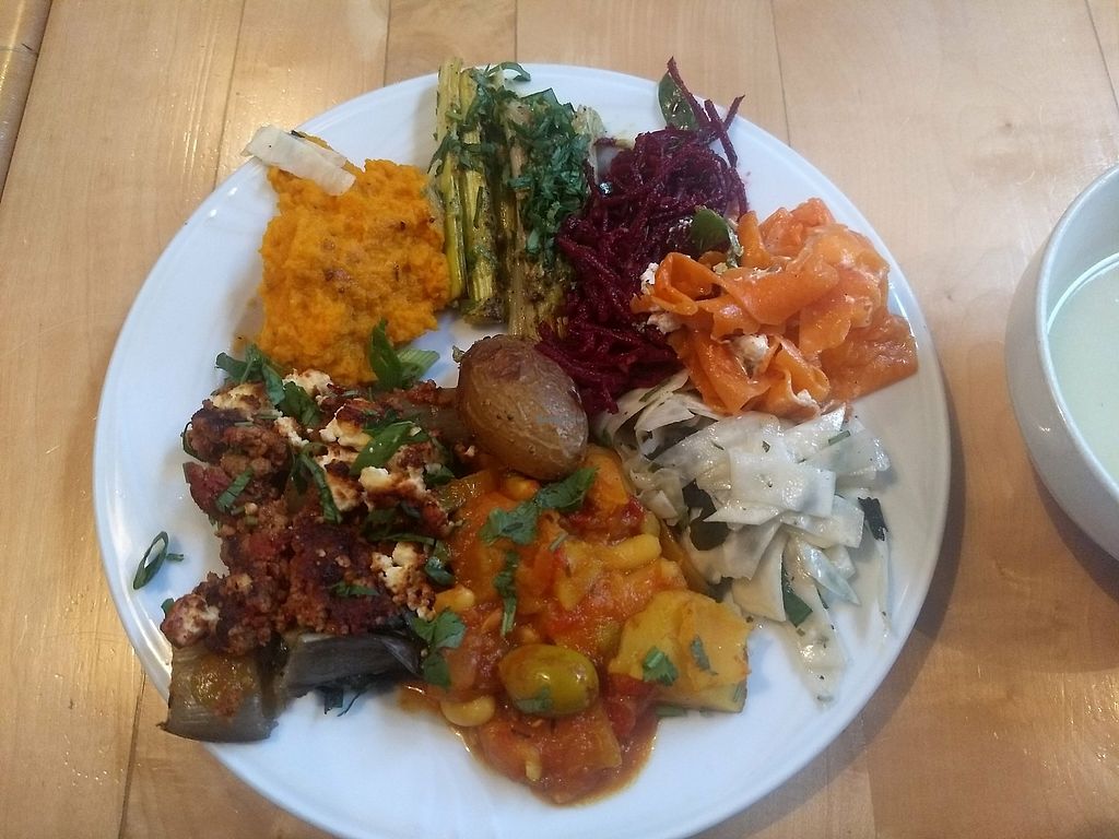 It's a mostly vegan buffet with a mix of seasonal warm and cold dishes. There is a lot of choices, the food was very tasty and the staff friendly. Highly recommended.