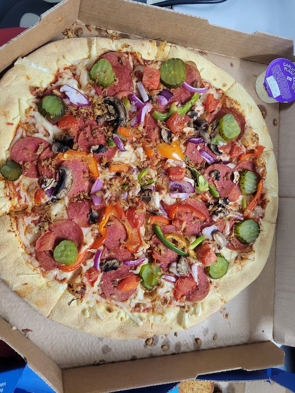 From a vegan dining perspective, Domino's pizza does a good job. They have vegan pizzas and sides, and the vegan options are labelled on their digital and physical menus. They also label the vegan boxes with a plant based sticker. The vegan toppings include vegan cheese, veggies, and plant based pepperoni. If you like Domino's pizza, then Domino's Bangor is no different, and you will be satisfied.