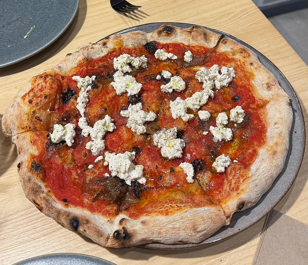 De las mejores pizzas veganas que he comido. Las dos que pedimos estaban riquísimas, al igual que la ricotta que pedimos para compartir. Quedamos muy llenos y no pedimos postre pero el dueño, que fue súper amable, nos dio para probar el postre de pistacho que nos hubiera gustado pedir. Repetiré seguro.
