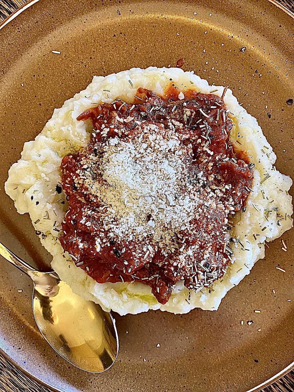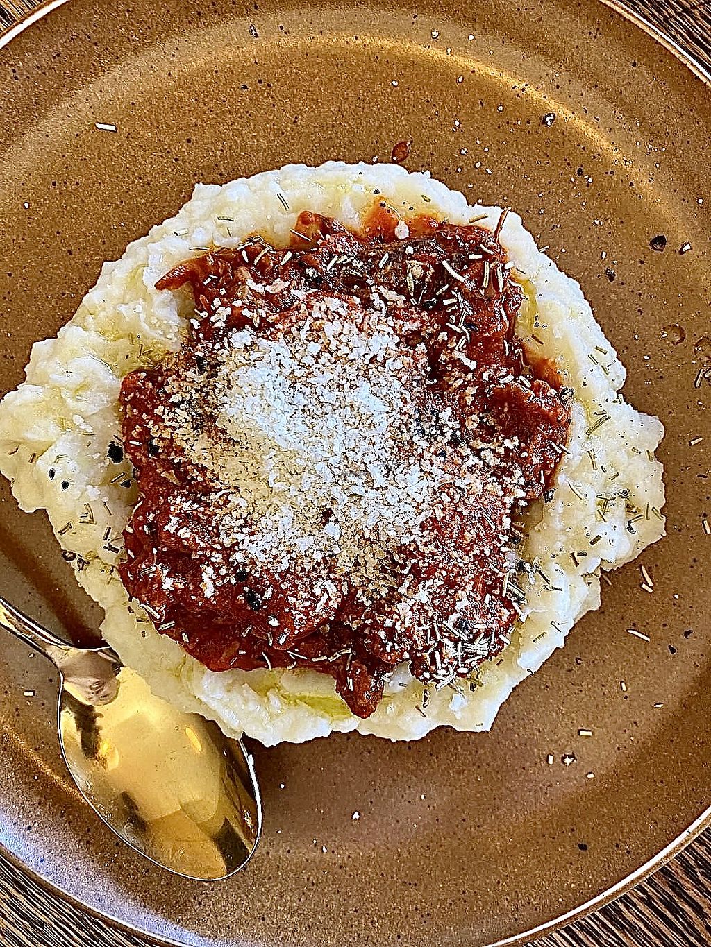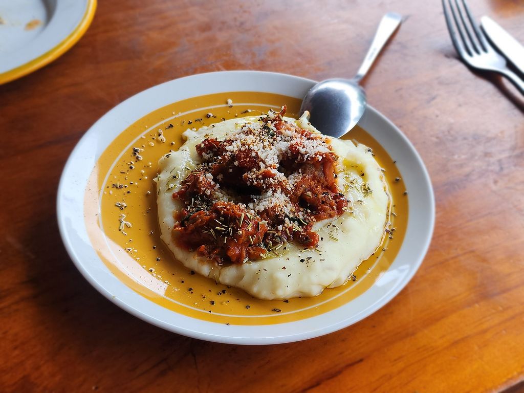 - Mushroom ragu: YUM! Fable in bolognaise sauce on creamy mash