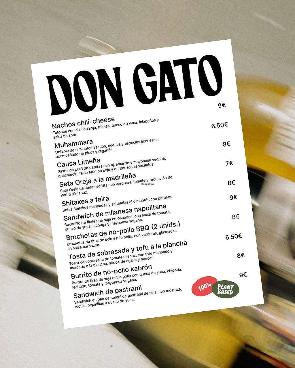 Vegan bar inside the Tirso de Molina Municipal Market. Offers 100% plant-based cocktails, tapas, sharing plates, individual dishes, and desserts. Open Wed-Fri 17:30-23:30, Sat 12:30-23:30, Sun 12:30-17:30. Closed Mon & Tue.