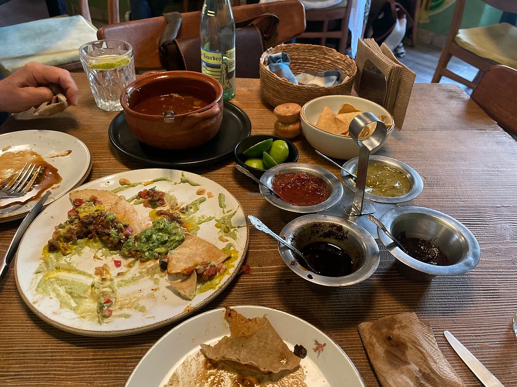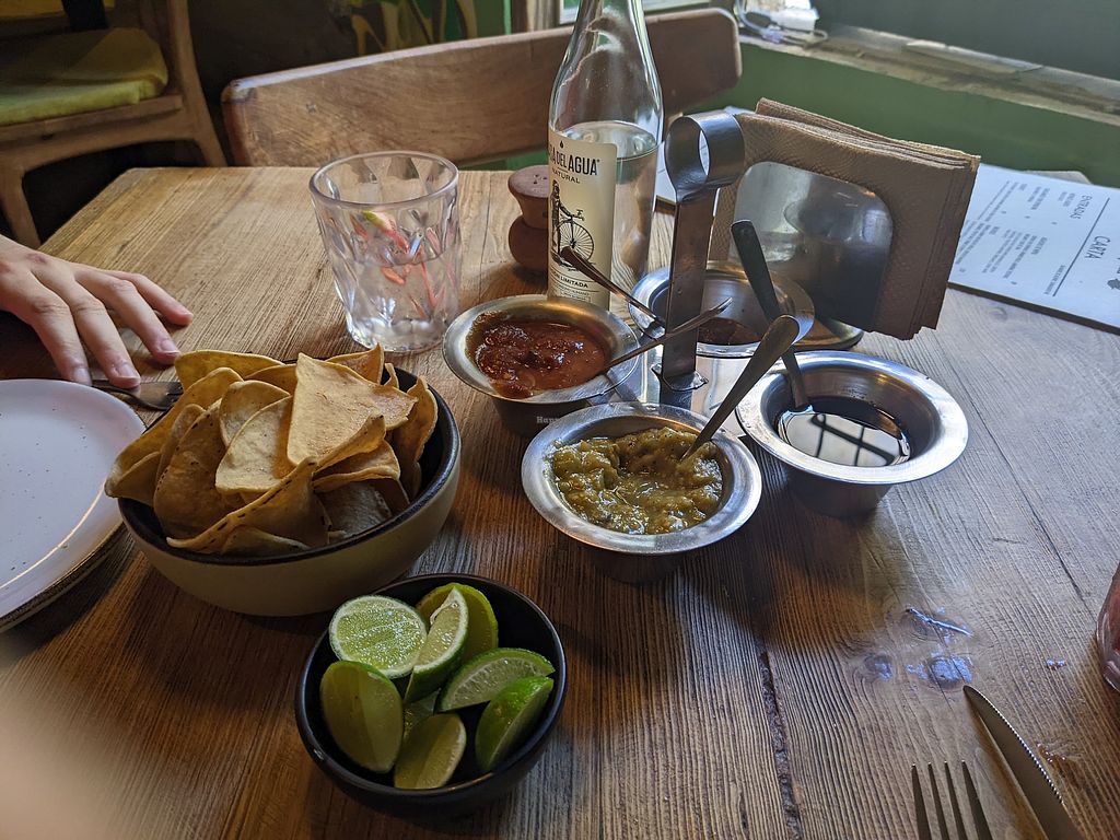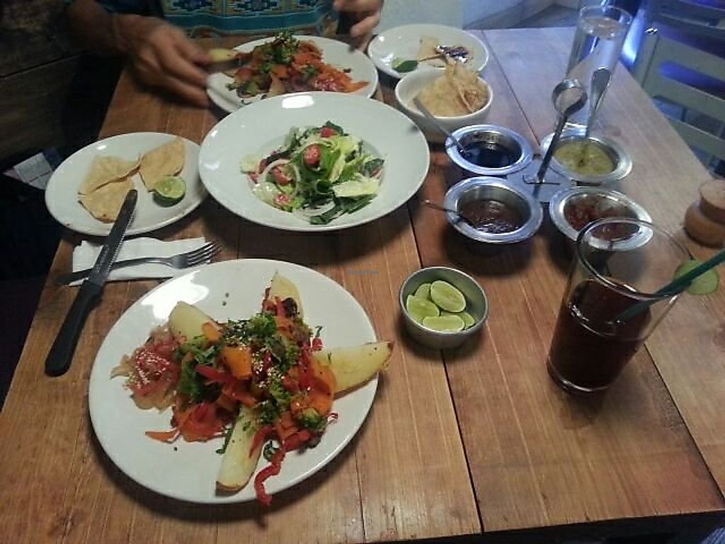 Delicious potato/veggie dishes, salad, great salsas and chips #Veganu…