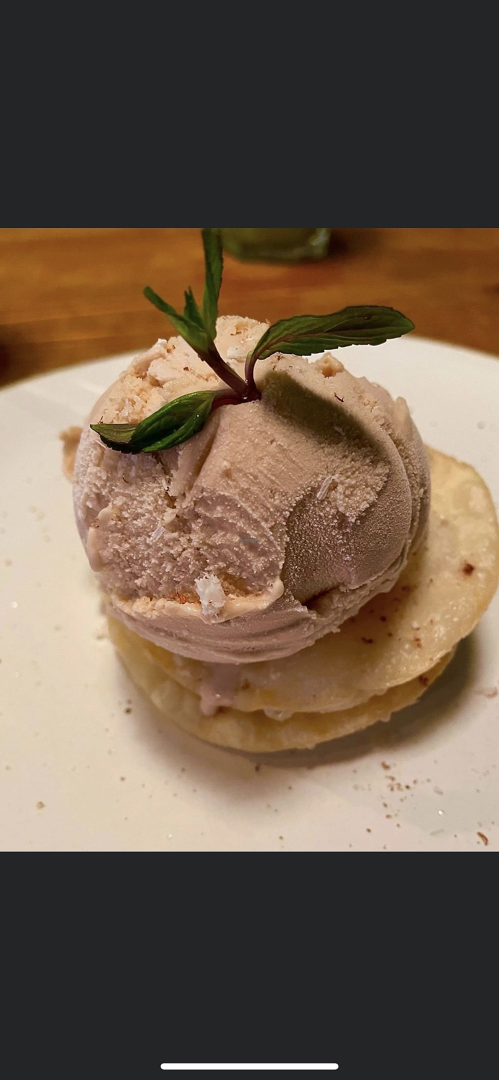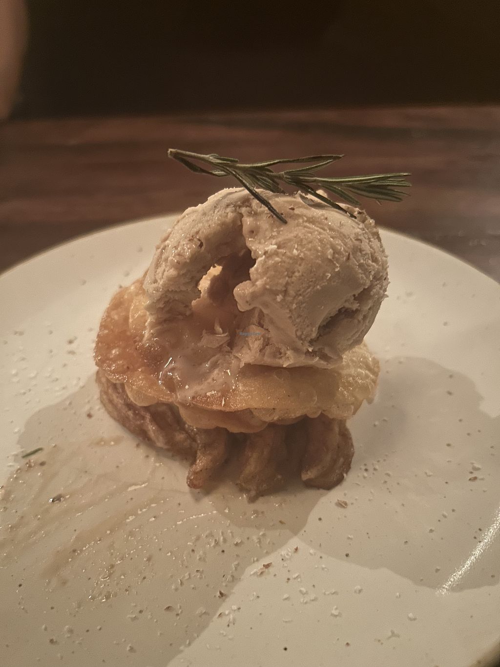 Hazelnut ice cream on cooked apple