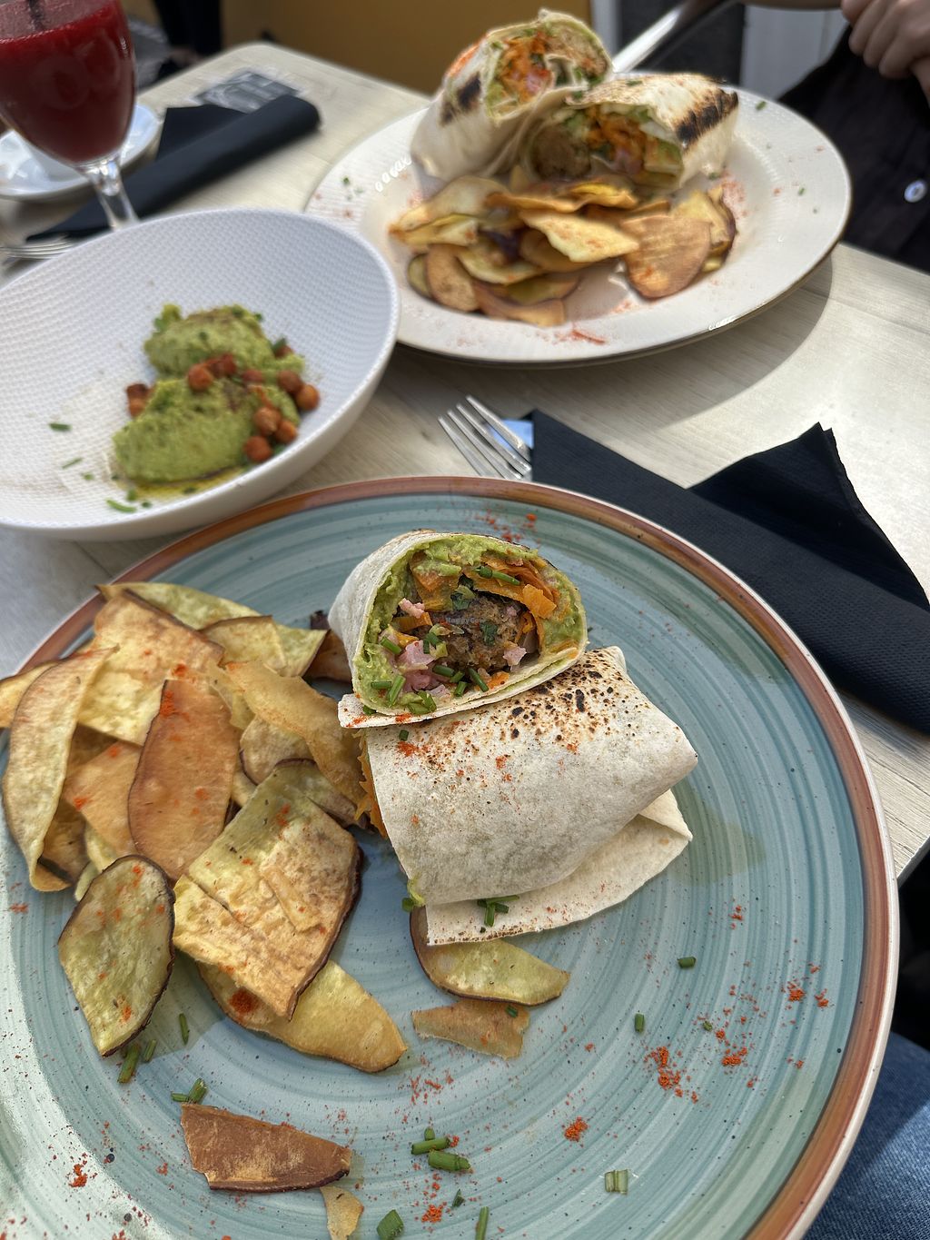 Vegan burger with sweet potatoes chips