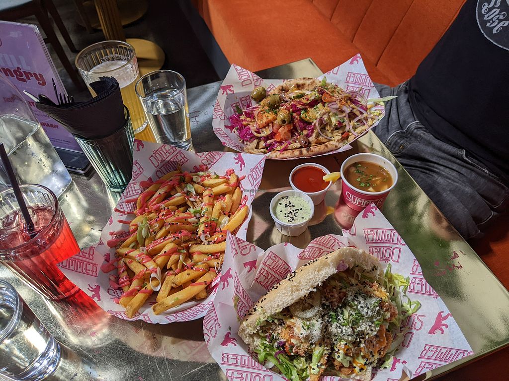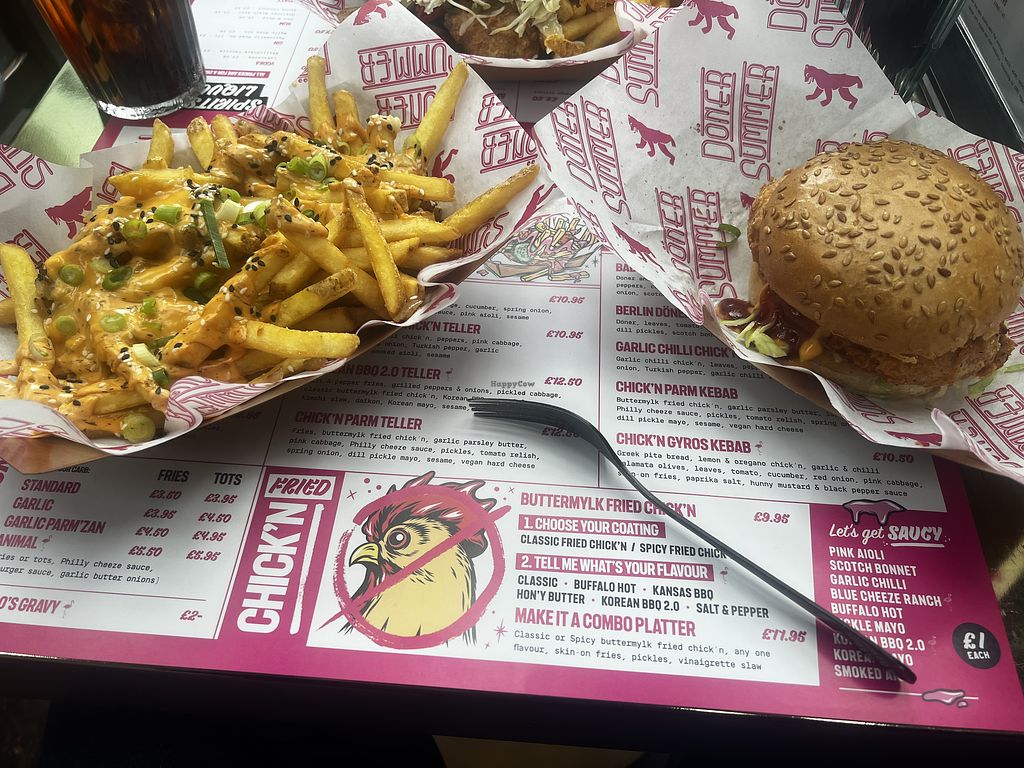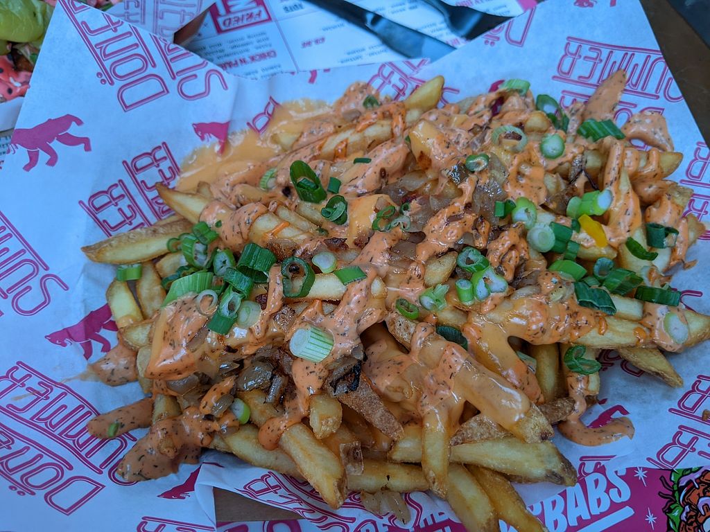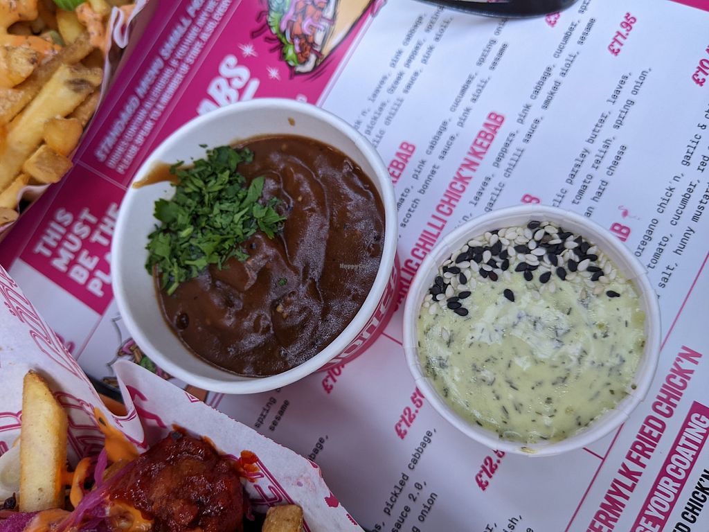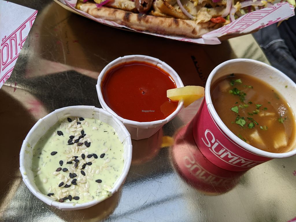 3 condiments; pickle mayo, korean bbq, hendo's gravy