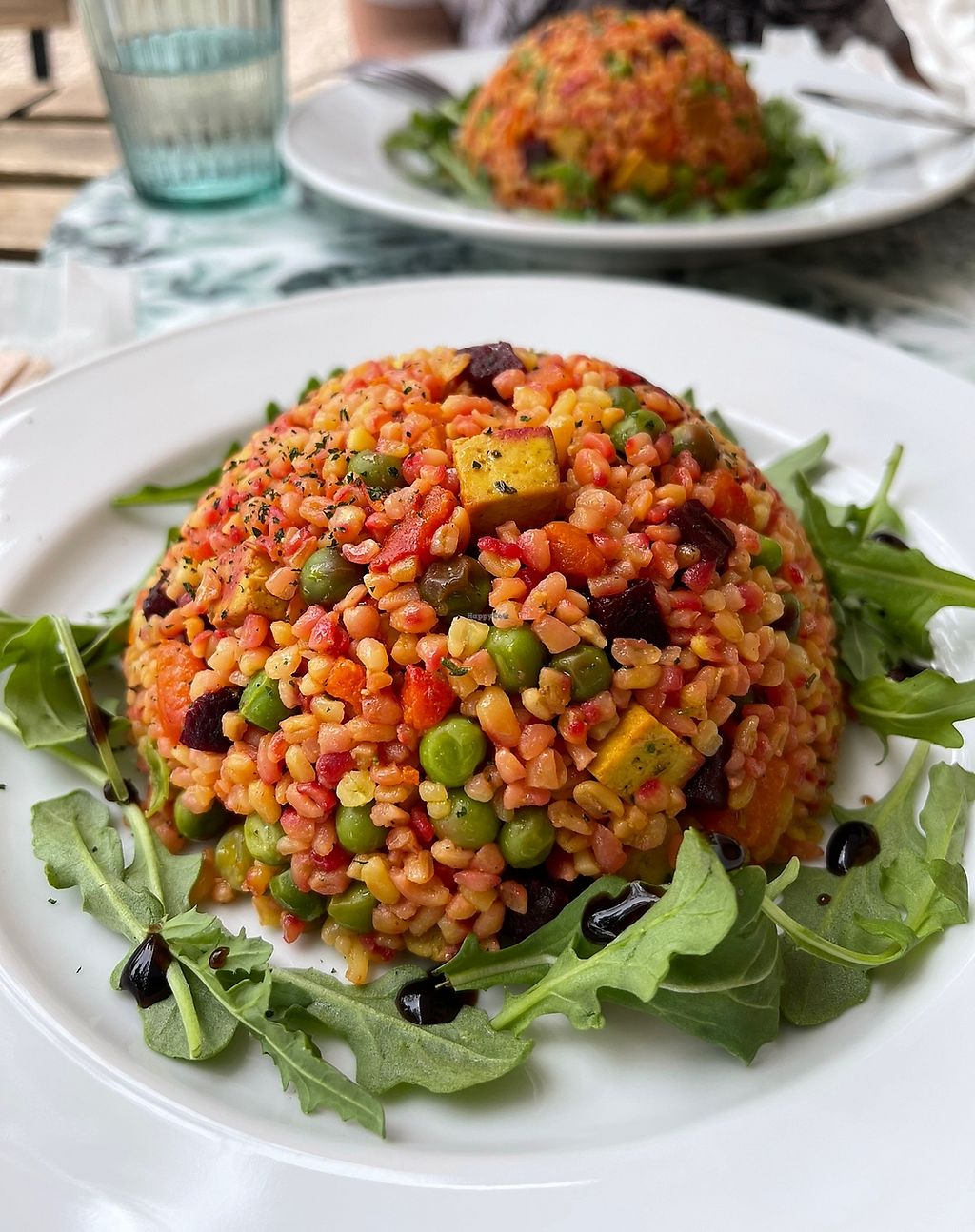 Vegan Burgers with Black Eyed Pea Salad and Rice (Main Option 2)