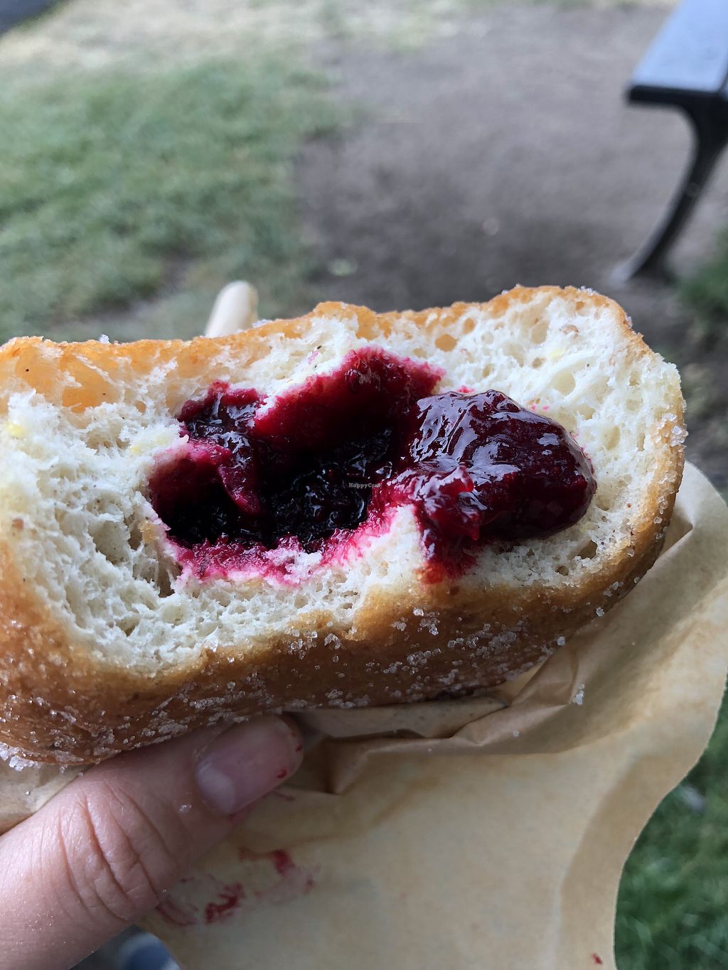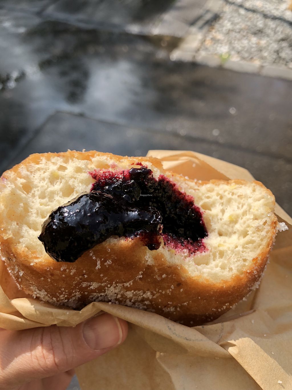 There’s definitely a sign outside now. Loved the friendly staff and loved the donuts even more. These are large yeast donuts that are super soft and oh so yummy! Of the vegan flavors offered this week: banana/avocado/chocolate filled, black currant glazed, lavender gazed, peanut butter glazed, and chocolate glazed with pretzels, I had lavender in the morning and took a peanut butter glazed to go! Both were delicious, and the PB a little less sweet. Plan to go again before my trip is up! Update: I did go back and found black and white currant-filled and blueberry filled donuts! Amazing! Also, tons of vegetarian ones (with dairy and eggs)... my husband had cream cheese coconut. (There was one with bacon, otherwise, I think the whole case was either lacto-ovo veg or vegan! No decaf option, so I had to skip an oat milk latte, but it was nice to see a milk alternative!