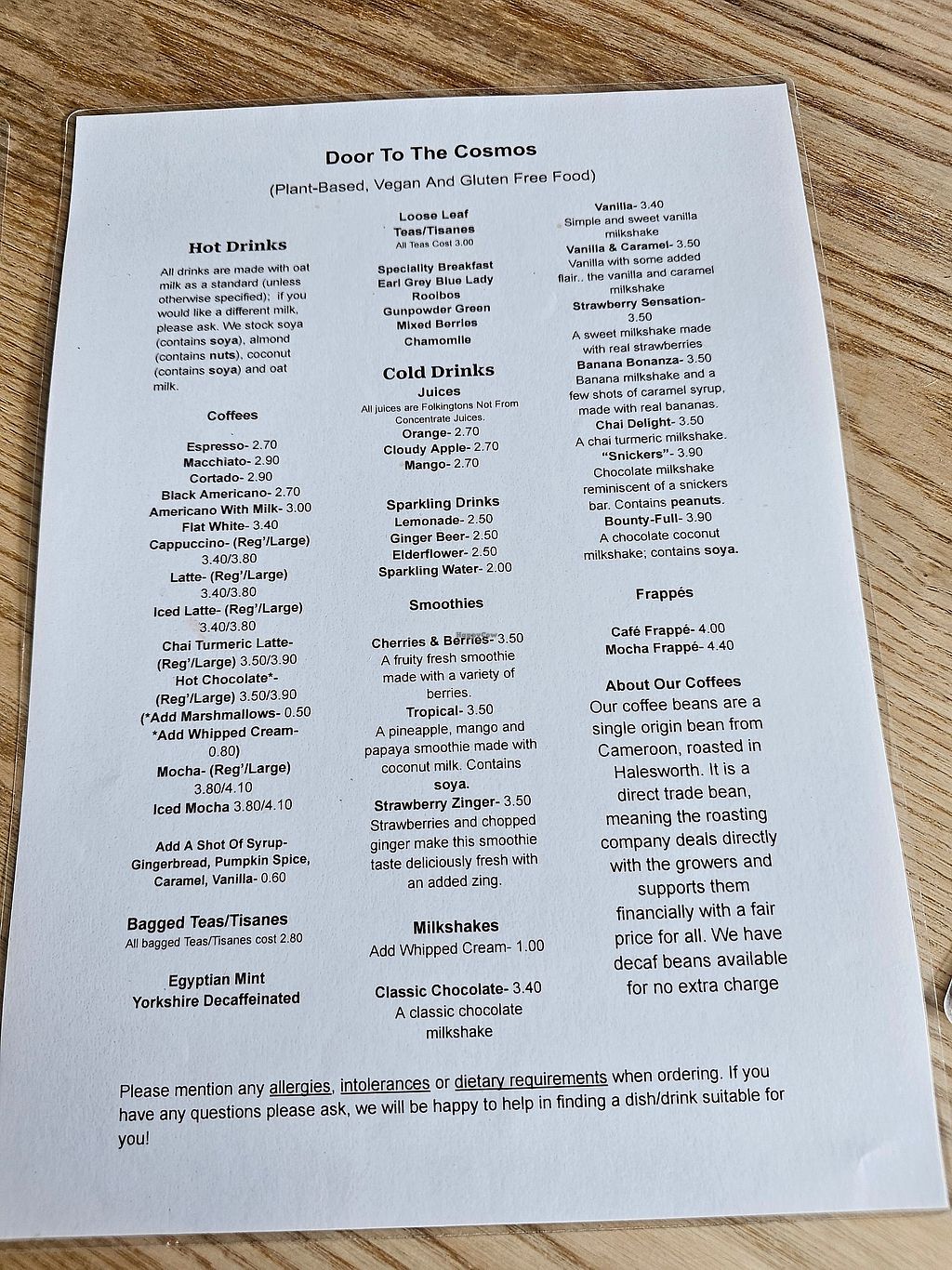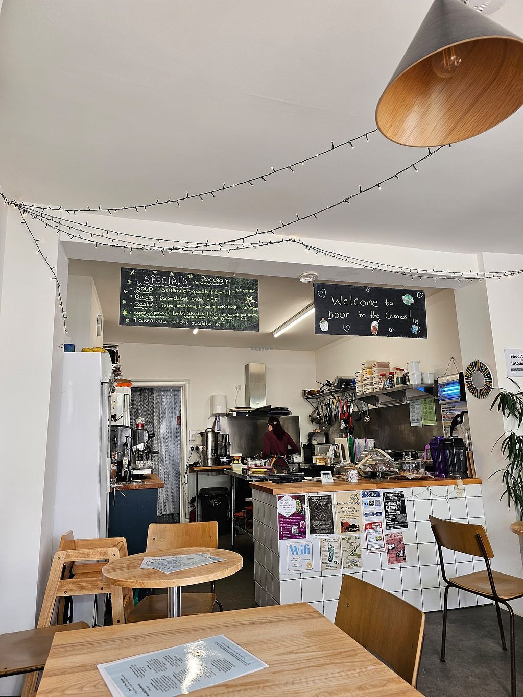 We walked through the door to the cosmos so hungry for lunch. We found a corner of the cosmos to salivate at the smells all around us. We joined our dog in dribbling whilst waiting. The falafel bowls then arrived and were colourful and delicious. Then upon tasting there was a food explosion where our chakras ascended to space. We were then brought back down to earth with delicious deserts that made us so grounded we couldn’t move. With one last cup of herbal tea it powered us,out of the cosmos, skipping down the road.