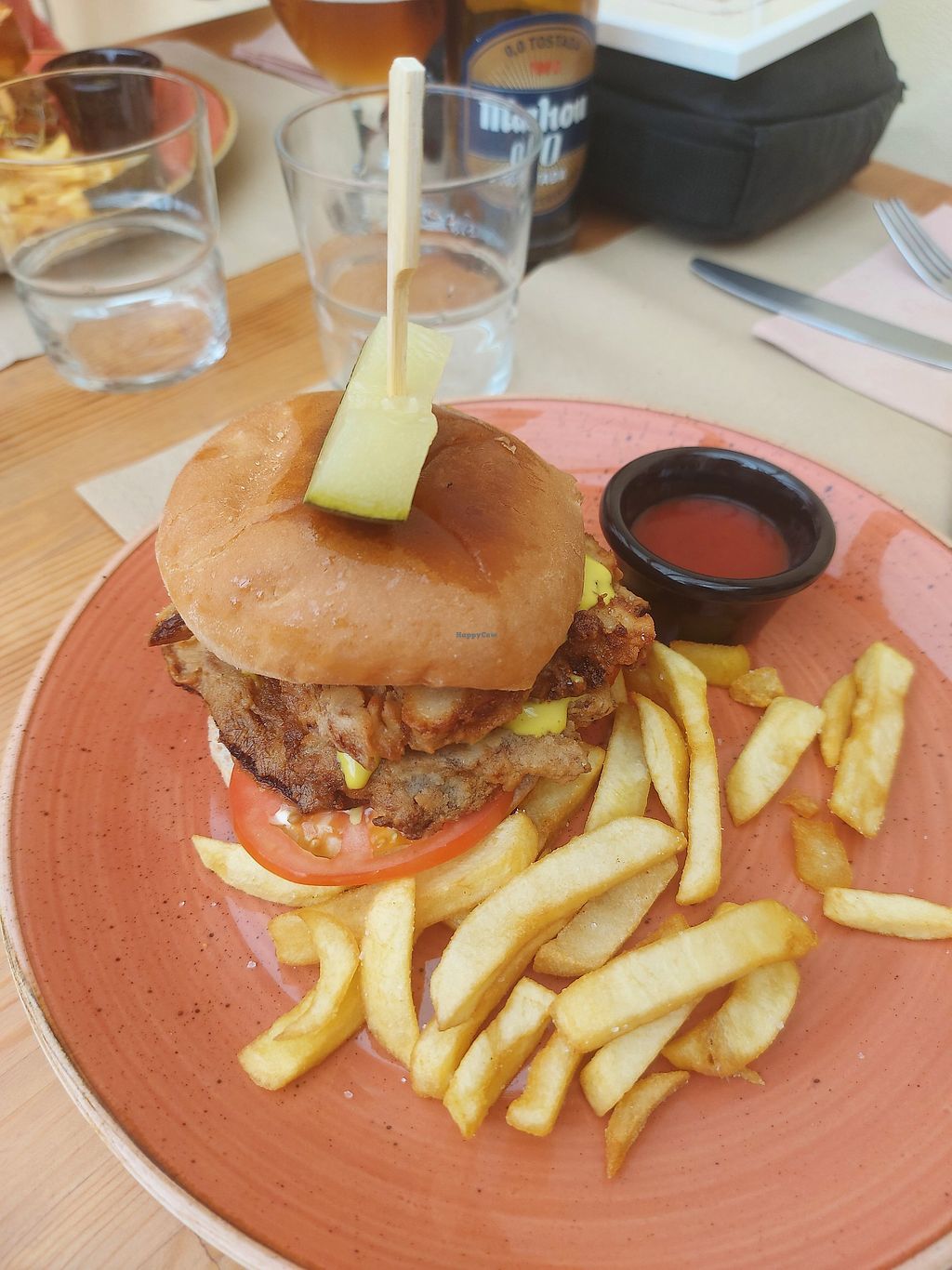 Nachos con Chili y no queso y vegan burguer