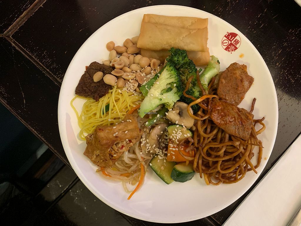 Noodles, Beef, Sweet and Sour Chicken and Broccoli