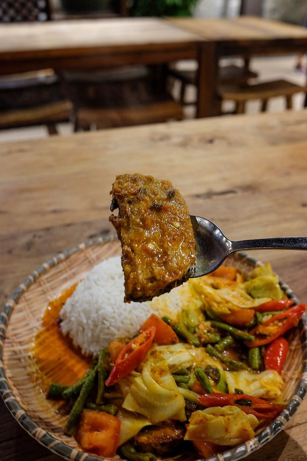 Indonesian veg fish rice sambal pepes with fish pieces made with tofu …
