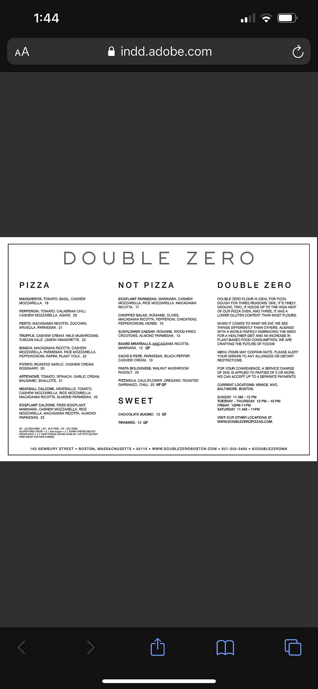 The staff were friendly and the food was good, not amazing, and a little too pricey for only being good, but it is Newbury Street. I would go back but I had been hoping for a fluffier more Neapolitan style crust given the name of the restaurant and the flour they use. The artichoke pizza was very good. The bianca sounded amazing on the menu but was a bit monotone in its flavors.