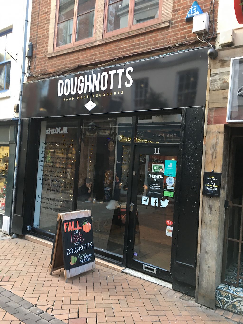 Doughnut shop using all-vegan dough, and offers several vegan donut options daily (labeled). Serves drinks, with soymilk available. Also known as The Nottingham Doughnut Co. Reported closed July 2020.