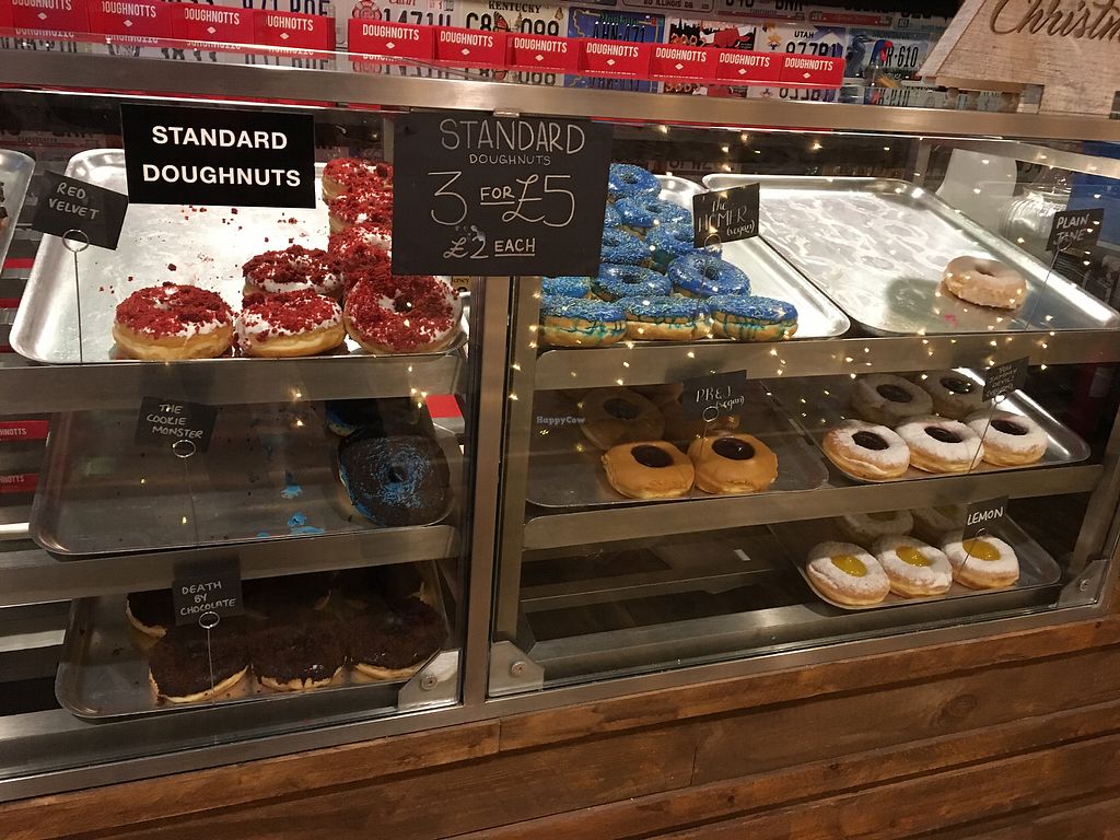 This place is so bad as I keep returning, the doughnuts are to die for! All their dough is vegan and have loads of vegan options (all labelled). Have Soya milk for hot drinks too!