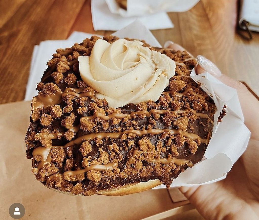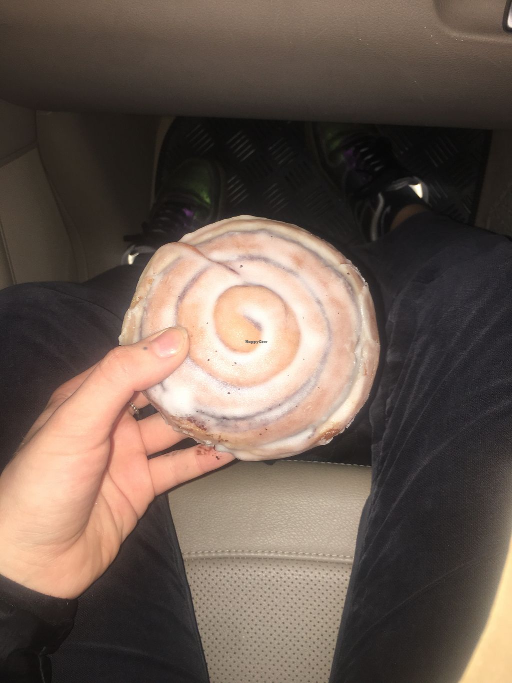 The vegan cinnamon bun doughnut is very tasty! They are all very much a sugar fest though so don’t make you feel great after. Closest you will get to a vegan Krispie Kream!