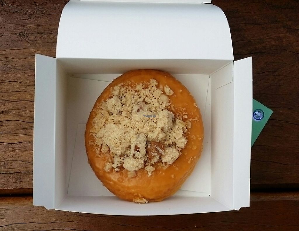 I called into Doughnut Time this afternoon to check out the vegan doughnuts ... it's located on the corner of Sandgate Road and Beames Road ... there was choice of 2 vegan doughnuts and I had the crumble doughnut ... same quality and taste as the doughnuts from the other Doughnut Time shops ... friendly staff