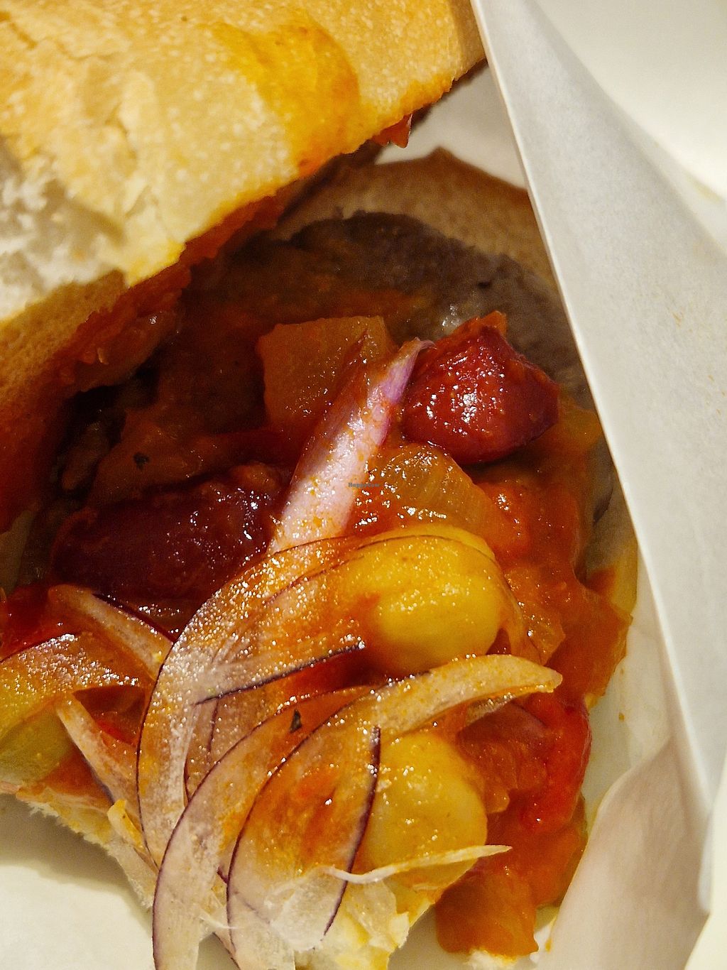I did fancy a burger today. Offering was a soy patty, ask for no mayo or cheese. Came topped with a chickpea, tomato salsa. Have to say it was different but very tasty along with the much needed soy milk iced matcha