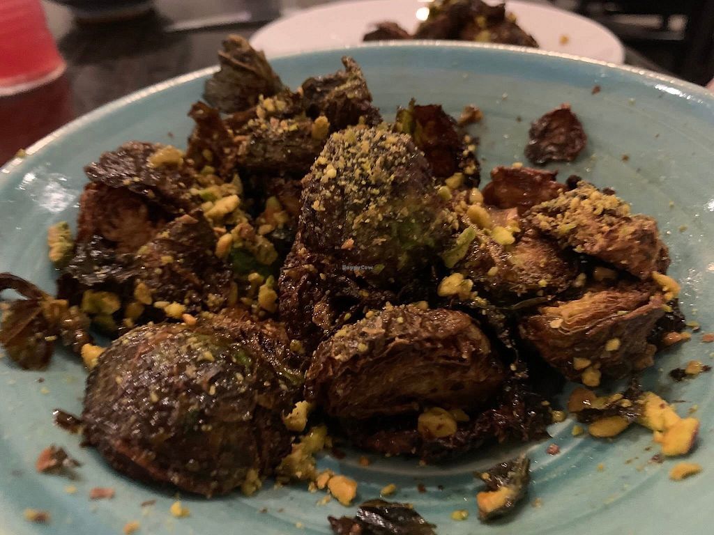 Brussel sprouts with pistachios, vinegar, and maple syrup