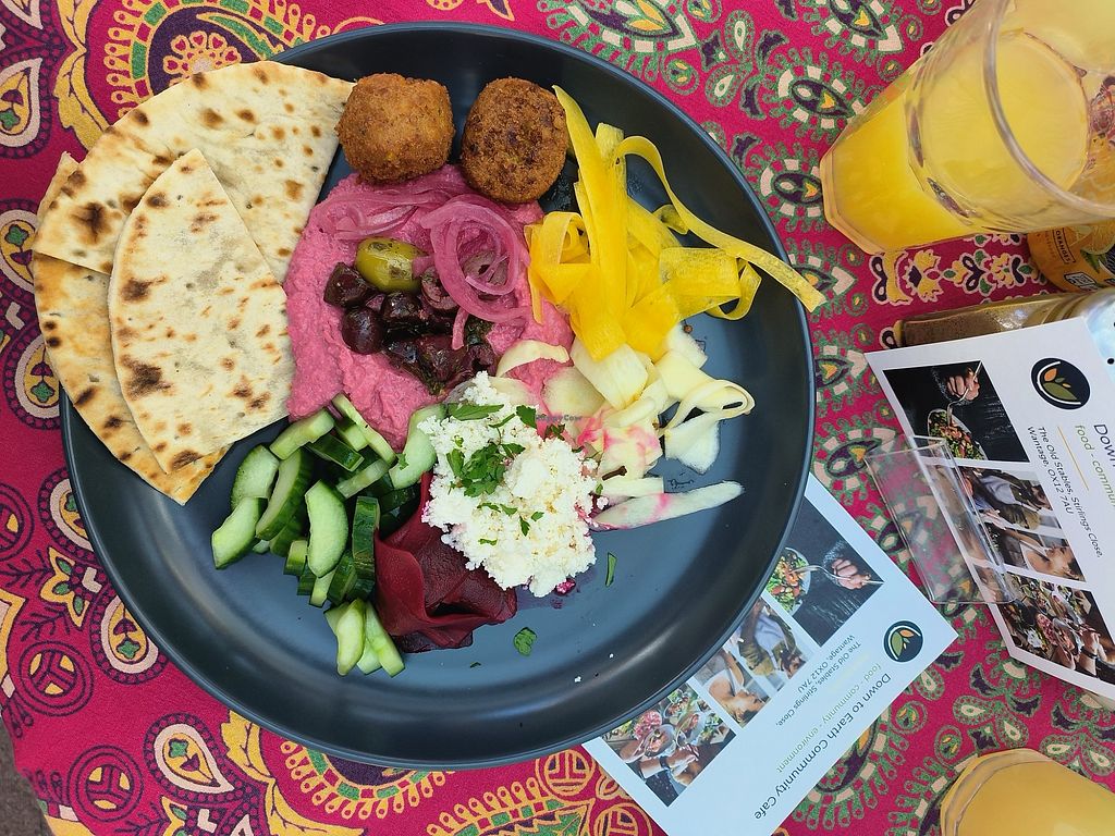 Really lovely community space. Vegetarian menu with a lovely vegan option - we had an amazing falafel hummus salad bowl. Multiple vegan cake options too, we had carrot and walnut cake and a chocolate cake. Also had a lovely pay-it-forward system where you could pay for a coupon for someone else to use. Definitely recommend!