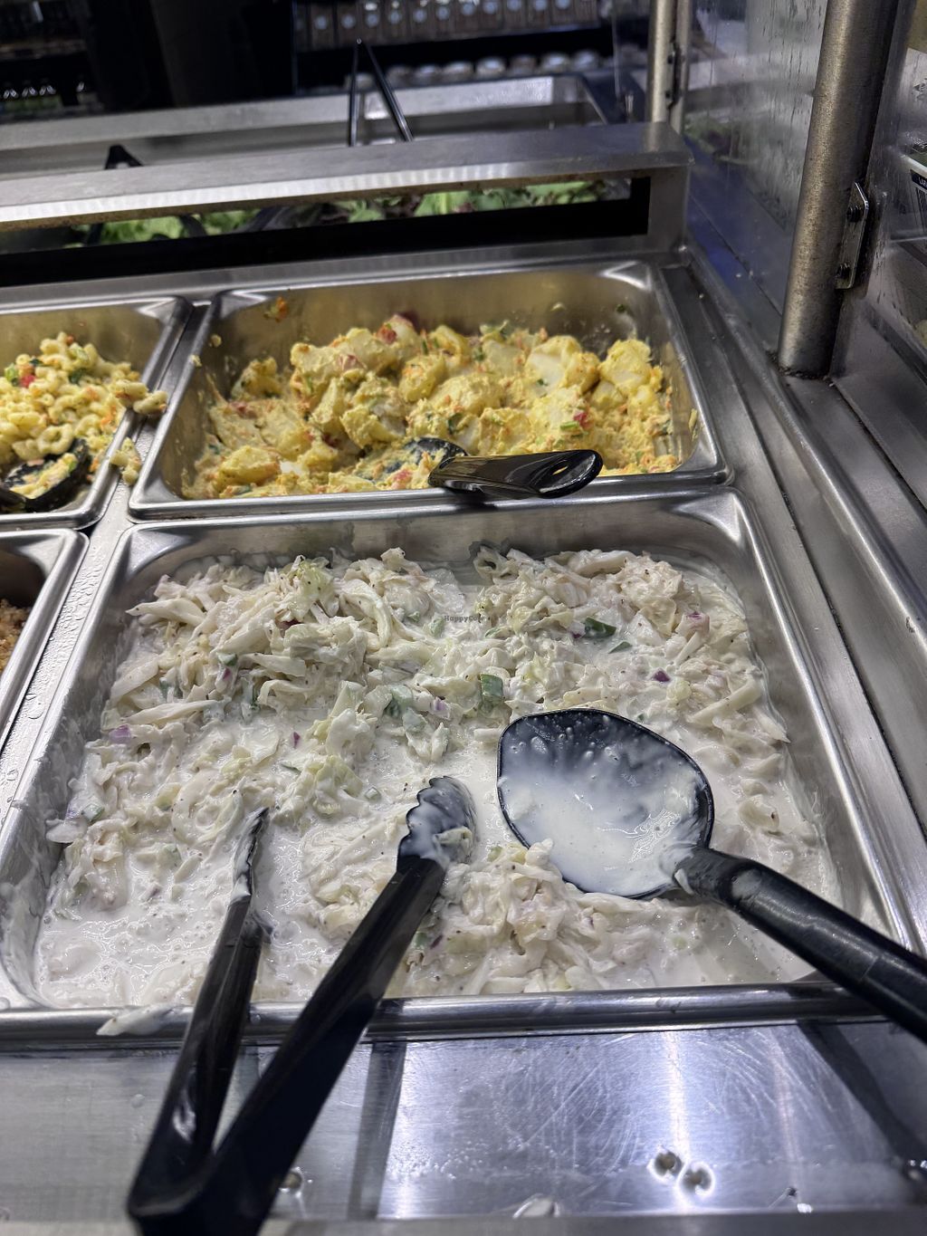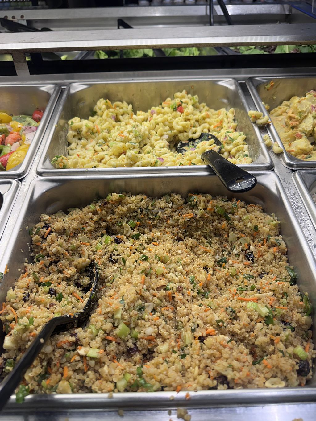 Lots of hot food bar options, including chicken salad. A few different burgers to choose from at the cafe including a house made one and beyond. Lots of vegan muffins and other parties to go too