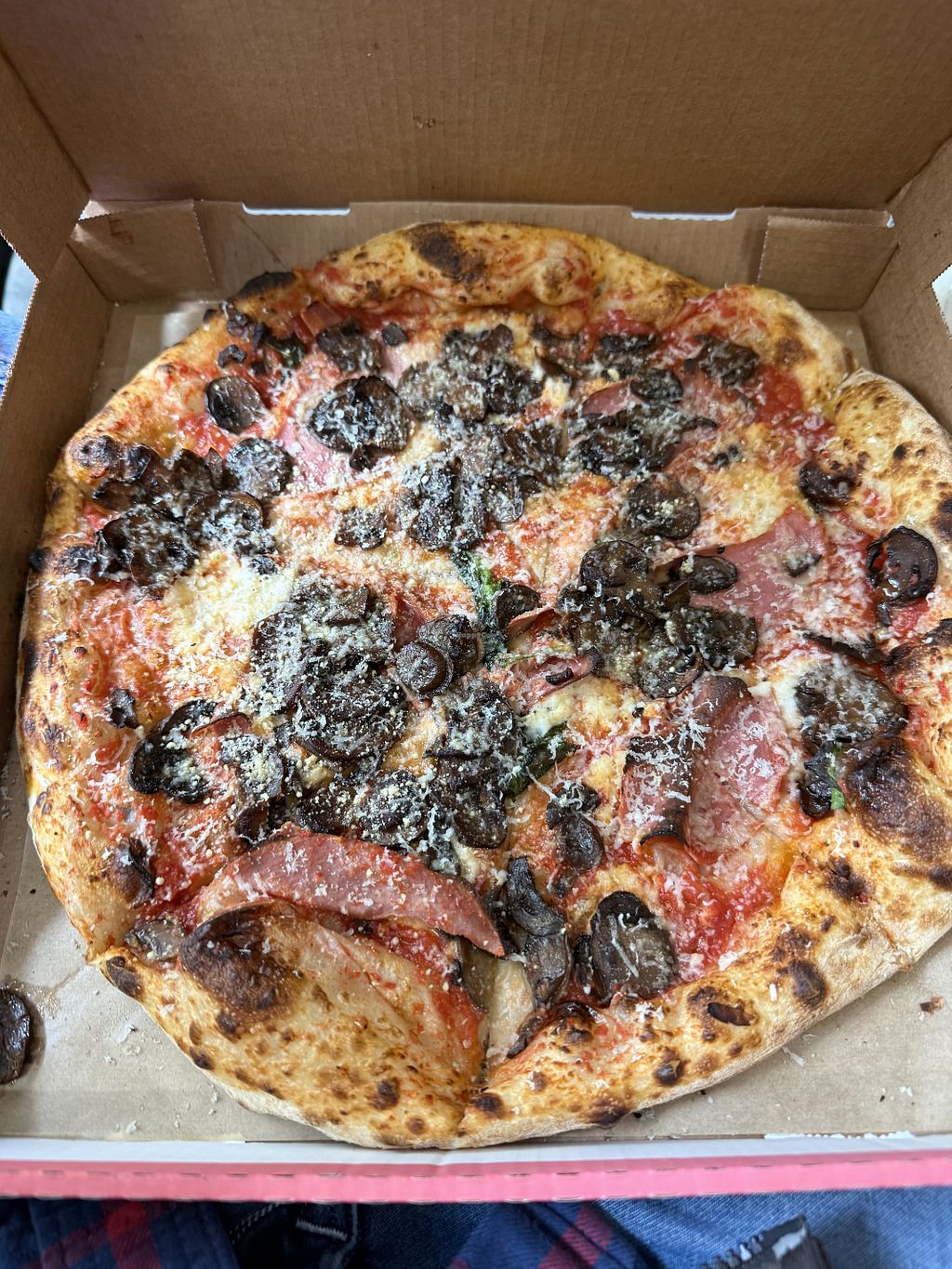 We got take out and appreciated how composed the pizzas were when they arrived to us.