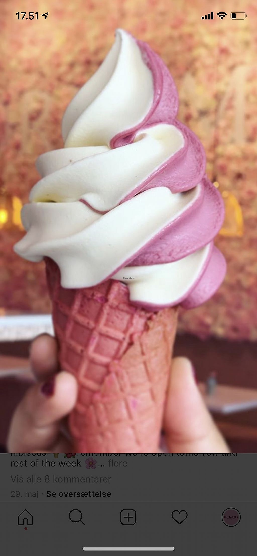 Serves meat, vegan options available. Cafe est. 2019. Serves breakfast and brunch foods like sandwiches and salads plus soft serve ice cream and cakes. Instagram @dreamycopenhagen. No longer fully vegetarian as of early 2021. Reported closed August 2021.