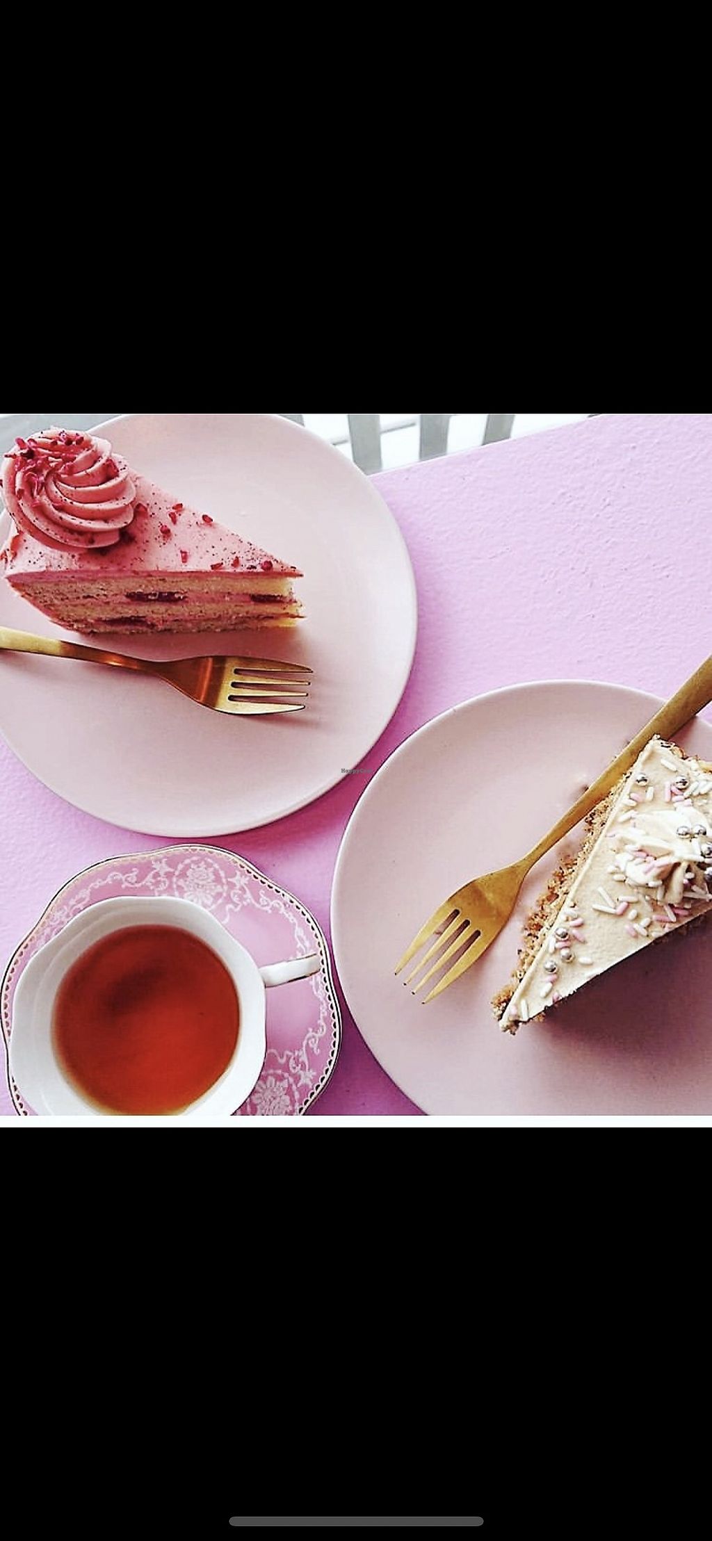 Read moreThere is an unusual pink theme for everything, pink humus, pink whipped cream, pink waffel, pink plates, pink roses, pink deco.