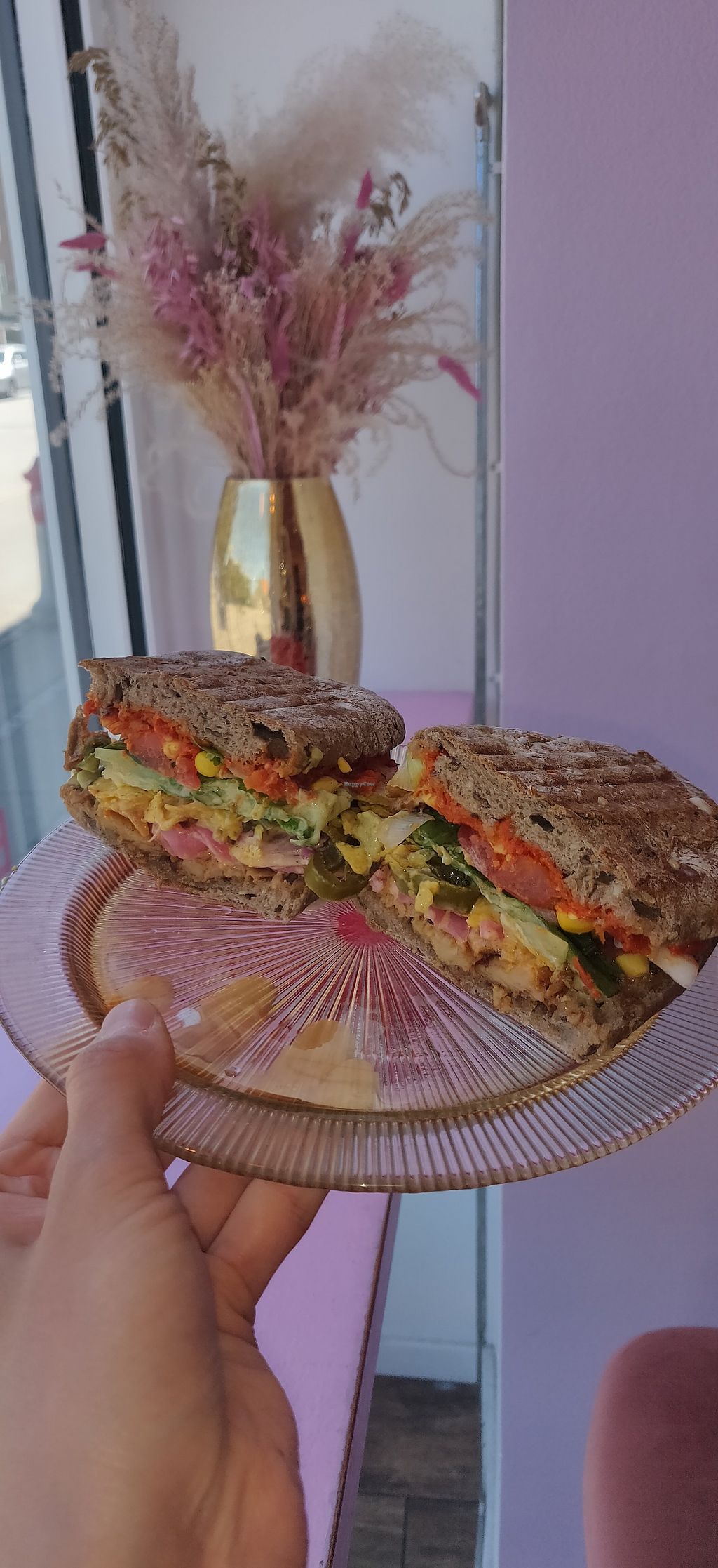 Love this vegan place. Yummy salads and sandwiches, and VERY tasty chocolate cake and waffle with pink (!!!) cream.