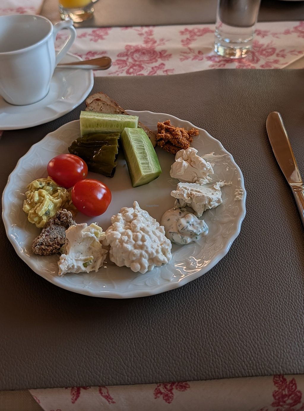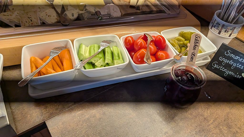 Unten: Gemüse und eingelegtes Gemüse (oben nicht vegan)