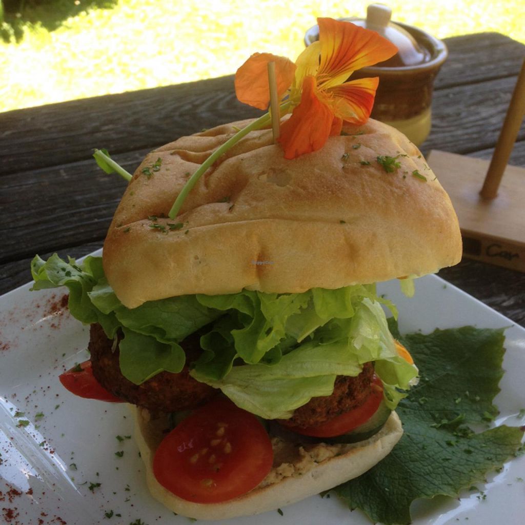 I went there twice on a recent trip to the Coromandel. I rang before I came and was told they had vegan food and it was not a problem. The first time I went there, it was late afternoon. I was told the cook had finished and there was no vegan food. The restaurant still had customers coming in and buying counter food. I asked if there was anything in the vast array of goods on the counter that I could eat. I was at first told no and then shown a jar of greyish biscuits and told they were vegan. They looked the most unappetising biscuits (hard and greyish) I have ever seen so I just left. I came back and tried again the next day for lunch as the wait person told me there is vegan food during the day. Sadly this time all there was on offer for vegans was felefal or a bagel and hummus. It seems this is all they ever have on offer. I was so disappointed. Falafel and bagels and hummus is basically standby vegan food – something you eat when you can’t get anything else and you're so hungry. I ordered the burger and although it was alright, the overload of chick peas both in the burger and in the hummus on the bun was not great and the meal had no creaminess (such as a tahini sauce or vegan mayo on the salad) so it was quite harsh on the stomach. I would not order this again. I felt really chick pea'd out afterwards.