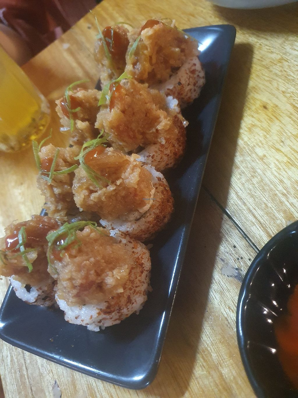 Miso Soup , Fried Tofu , Edamame and Vegan Volcano roll