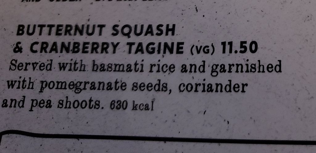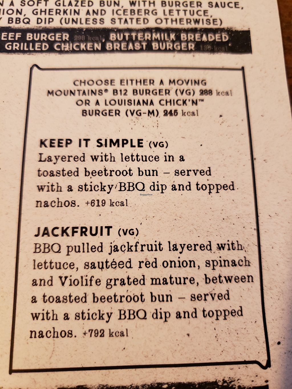 Limted options on the main menu, the website did say there was a vegan menu but we couldn't find one. We ended up getting quorn burgers but they were pretty bland.