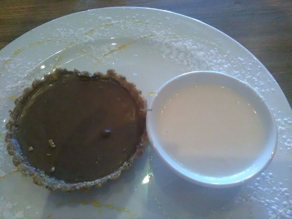 Mini nutty chocolate pie with coconut ice-cream (melted here). Only ve…