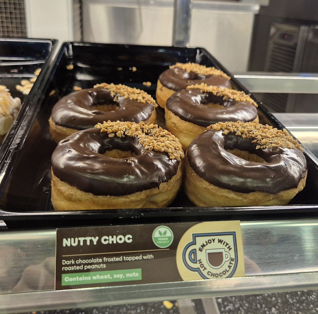 After going through security at domestic departures this was the only place I found with clearly labelled vegan food options. Donuts have a clear vegan friendly label, others have a very similar looking vegetarian friendly label so just be careful not to mix the two up.