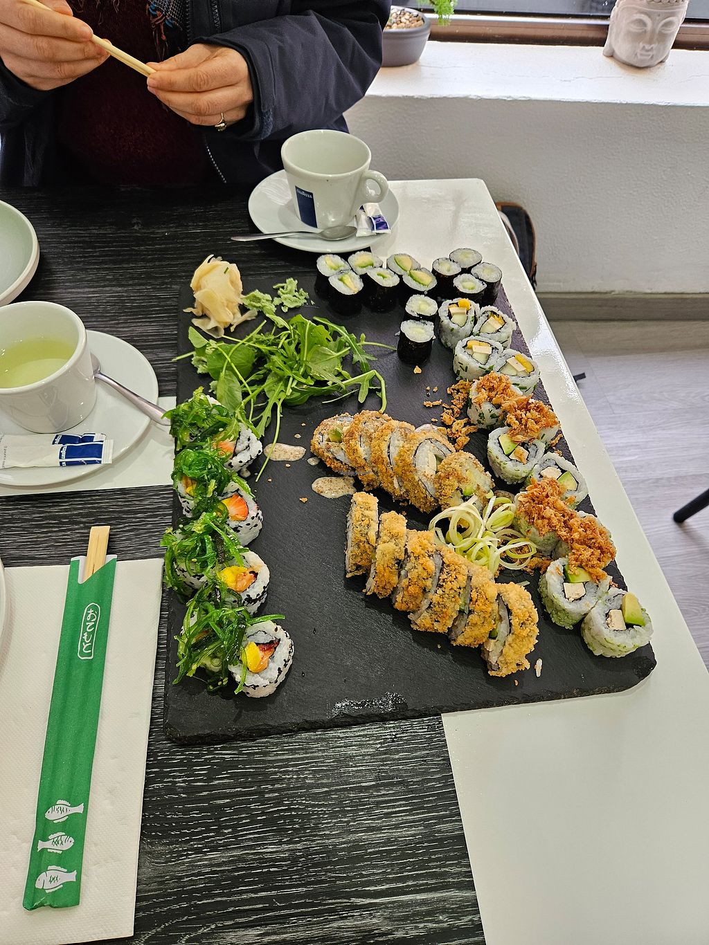Very friendly and nice waiter/chef/owner(?), great prices as well, we had 42 pcs vegan combo set