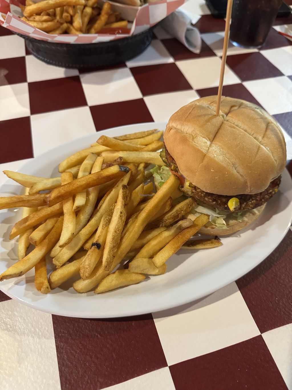 The veggie patty is fine. I much prefer a beyond or impossible burger, but it was good. I just got the cheapest burger minus mayo and replaced the beef burger with the veggie patty. I ordered the side of fries and they were okay but flavorless. I’d eat here again, but it is not my favorite burger. Could be stepped up with a beyond or impossible patty for sure!