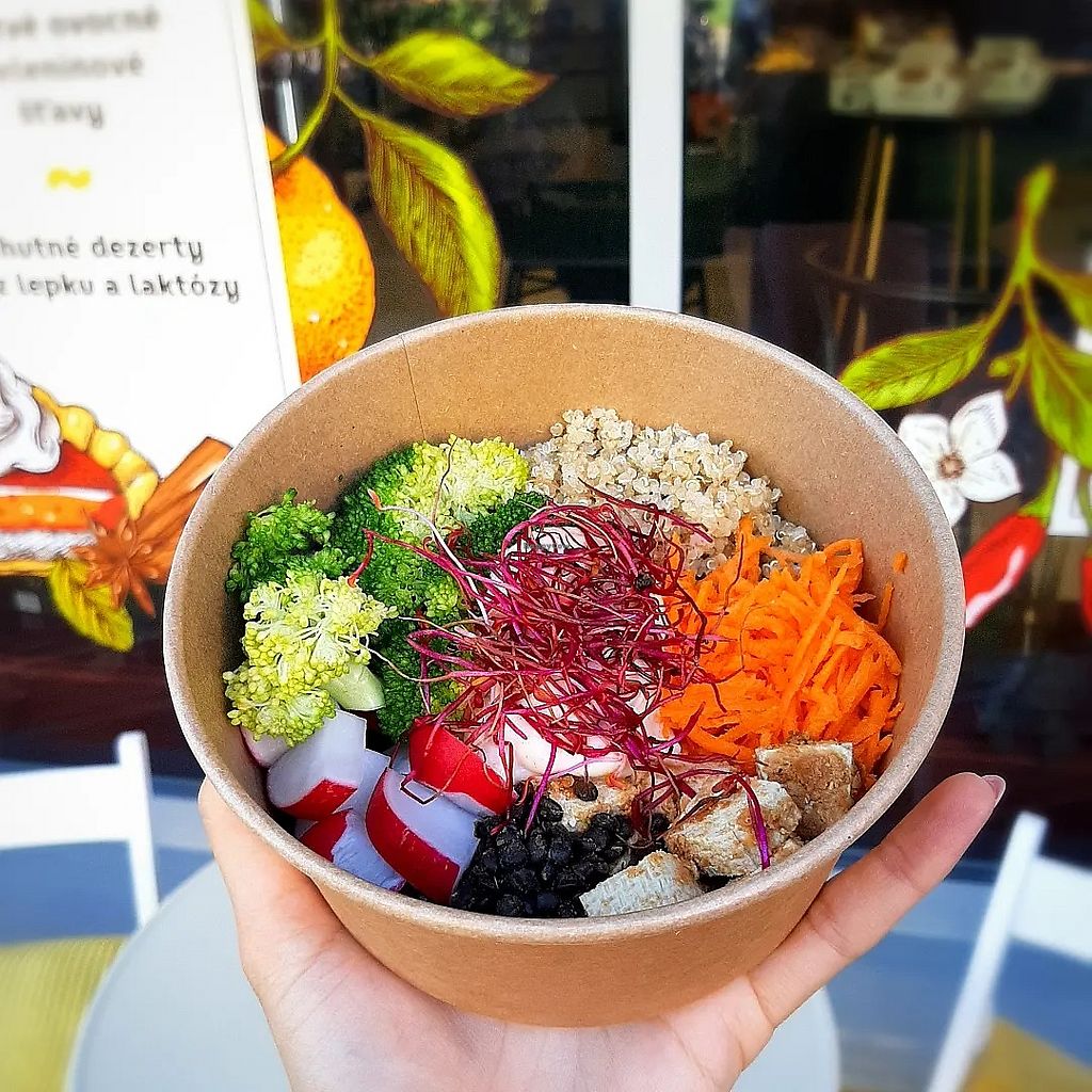 Vegan health food store offering a variety of good including faux meats, plant milks, dried goods and more. Also serves take away dishes, baked goods and coffee. Relocated from Moyzesova 4. Open Mon-Wed 06:30-16:30, Fri 06:30-16:30, Sat 08:00-11:00. Closed Thu & Sun.