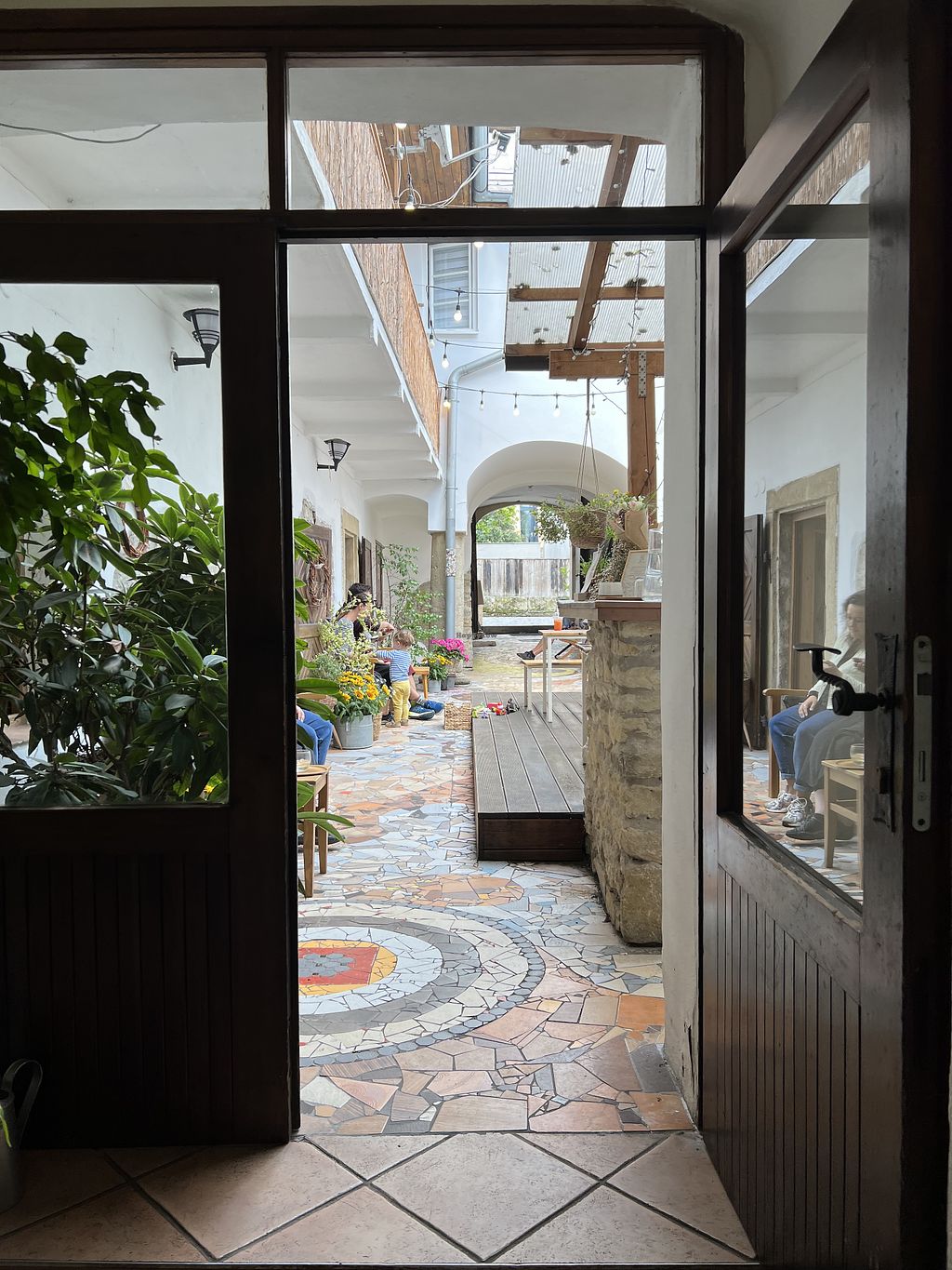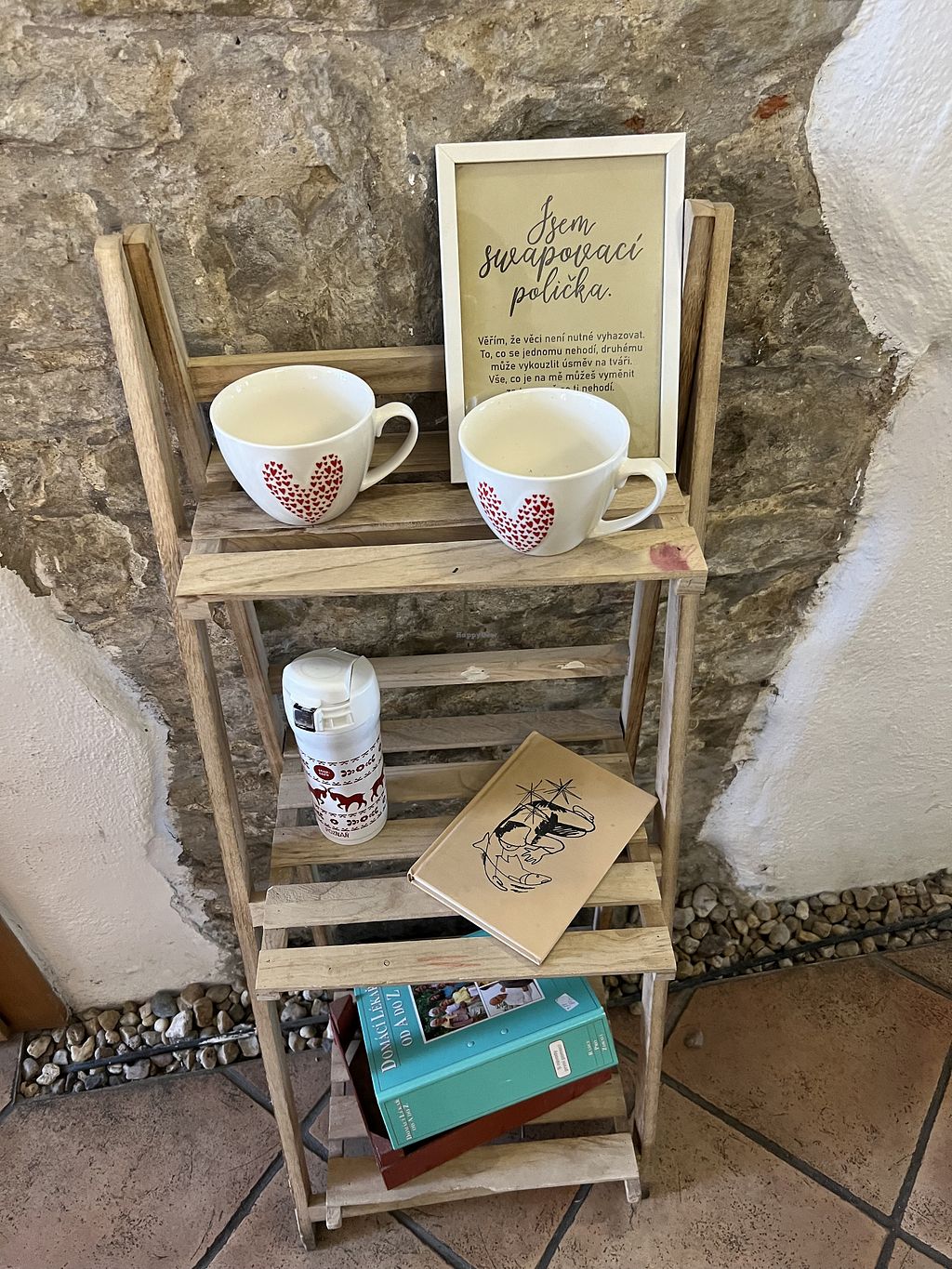 Cafe offering vegan food options such as cake, desserts in a glass made with tapioca, and savoury items like bread with spreads. Vegan options are clearly labeled. Open Mon 09:00-17:00, Tue 07:30-05:00, Wed-Sat 07:30-17:00, Sun 09:00-17:00. Closed Mon.