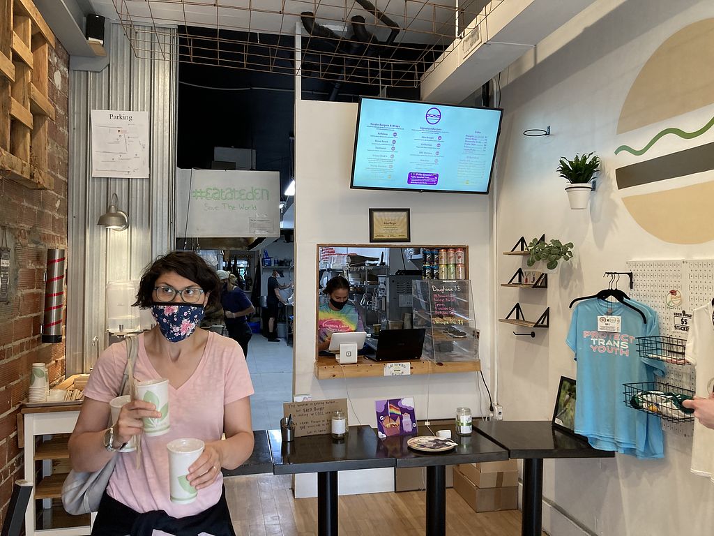 Vegan fast food restaurant serving organic burgers, fries, nuggets, and milkshakes. Est. 2017. Previously called Eden Burger. Reported closed December 2023.