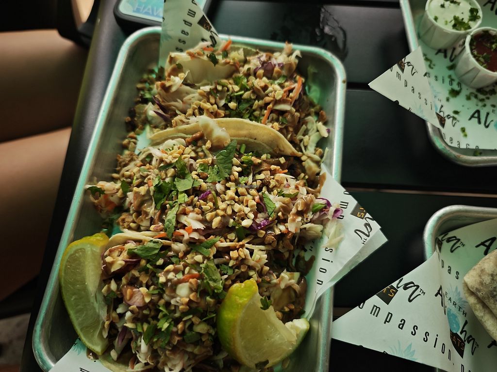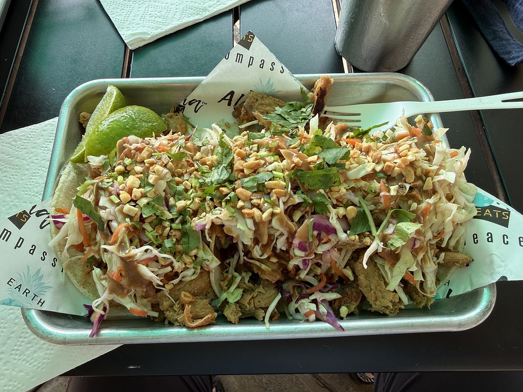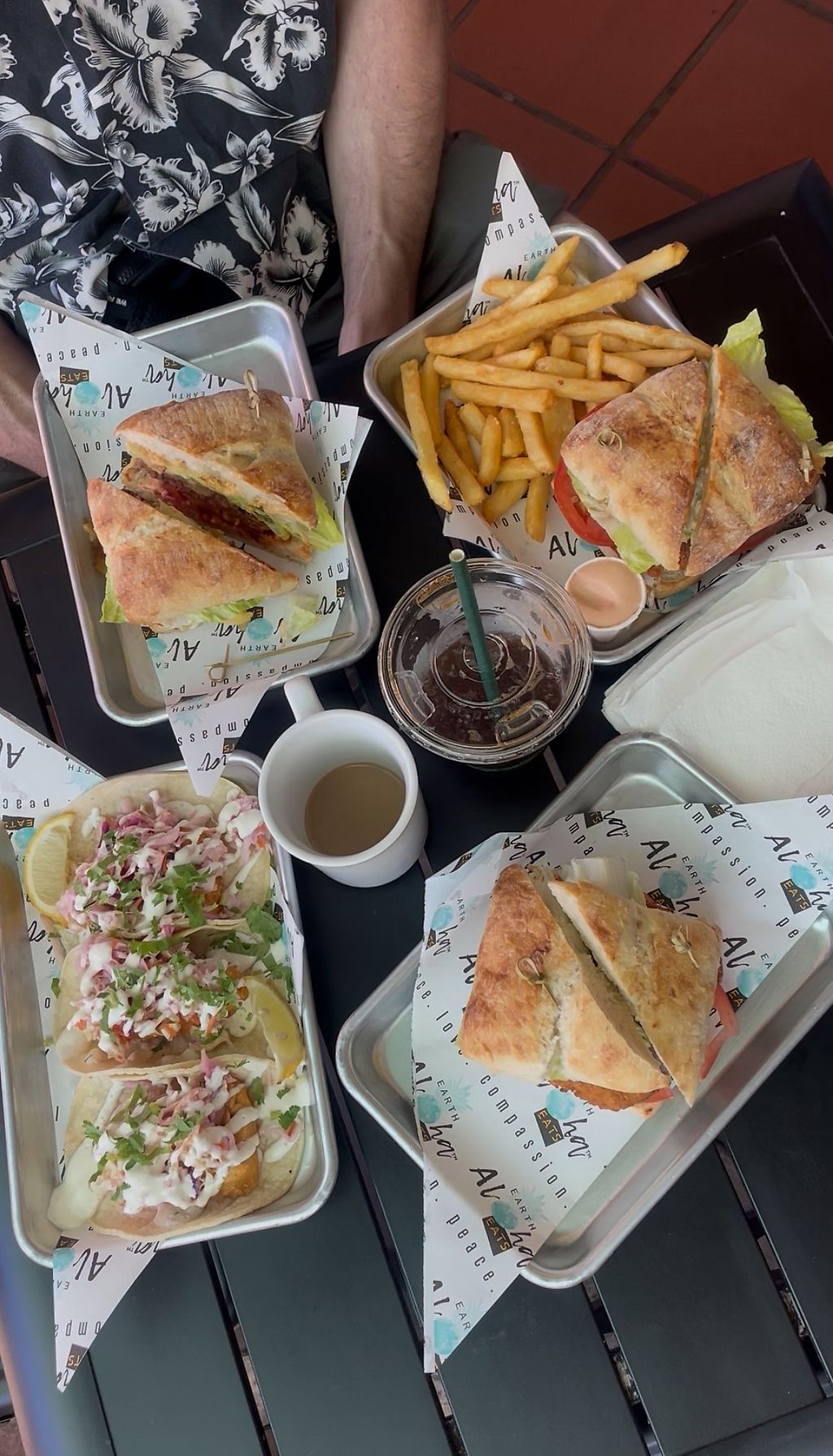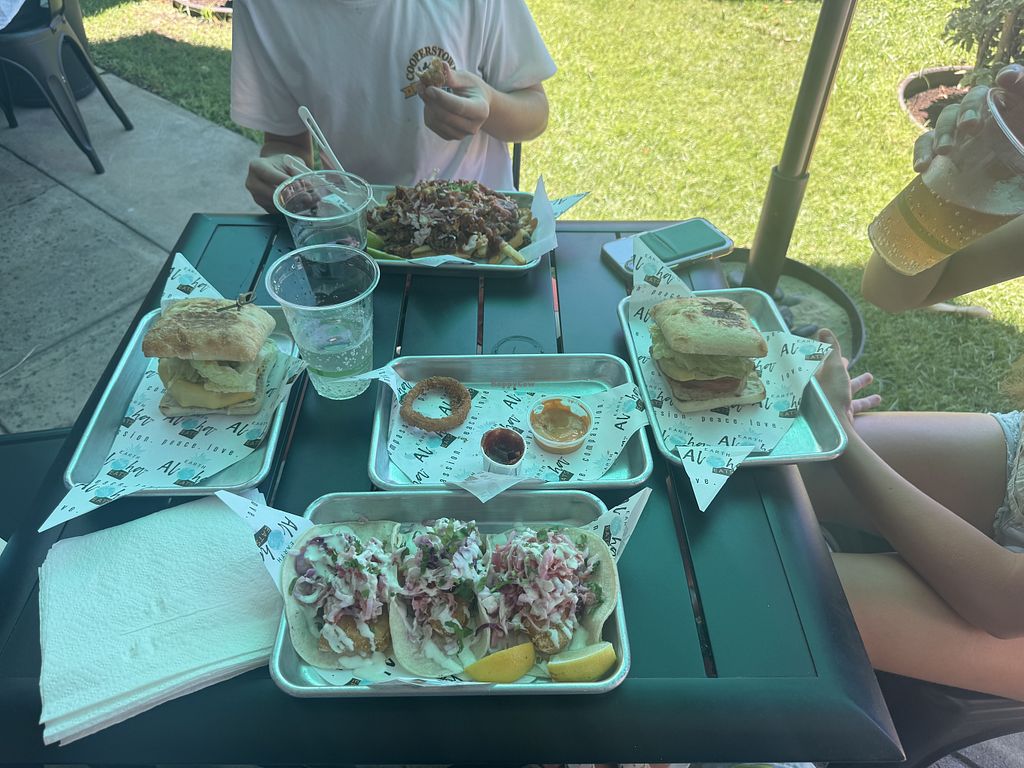 What’s left of the onion rings, fish tacos, shred fries, and an aloha …