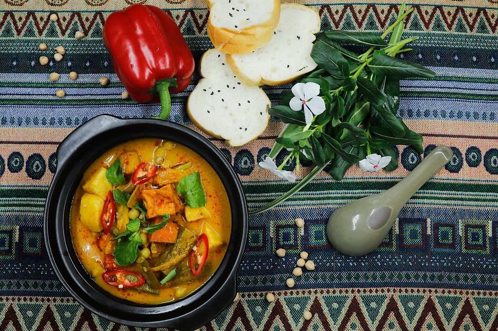 Chickpeas curry with bread or steamed rice