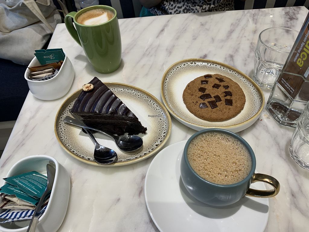 Super good food here to high standard! We tried the meatbal sub and two cakes! Would have loved to visit again but it's a little over our average budget! Worth it though for sure. Everything is vegan and they topoed our water up all the time. Felt very fancy! Earth Cafe is a chain so you'll find more around :)